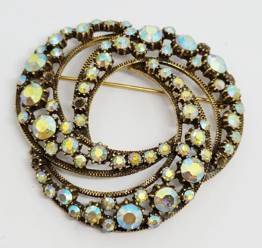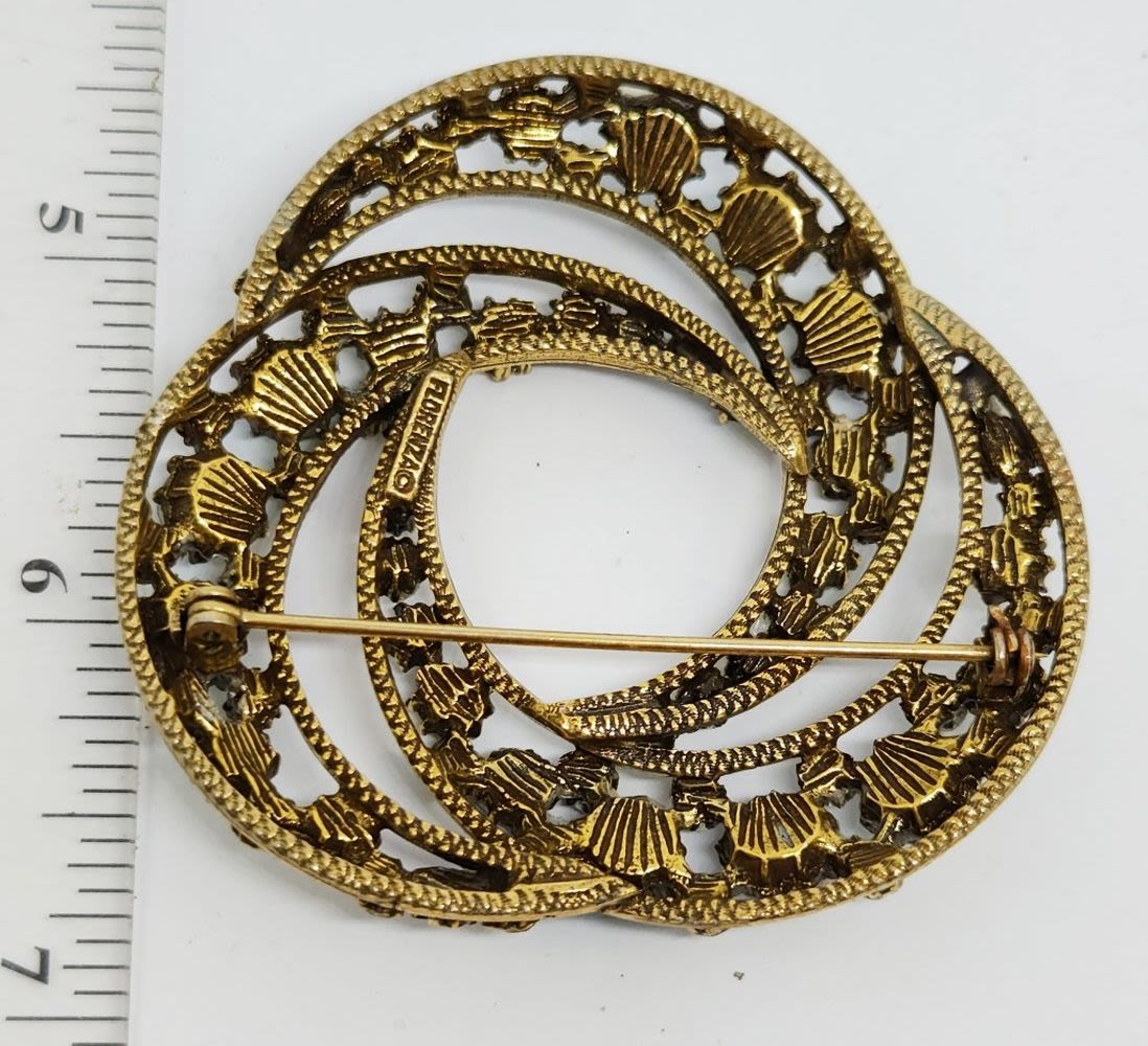 FLORENZA SIGNED BROOCH, MISSING STONES, SEE PHOTOS, STILL GORGEOUS VINTAGE FLORENZA