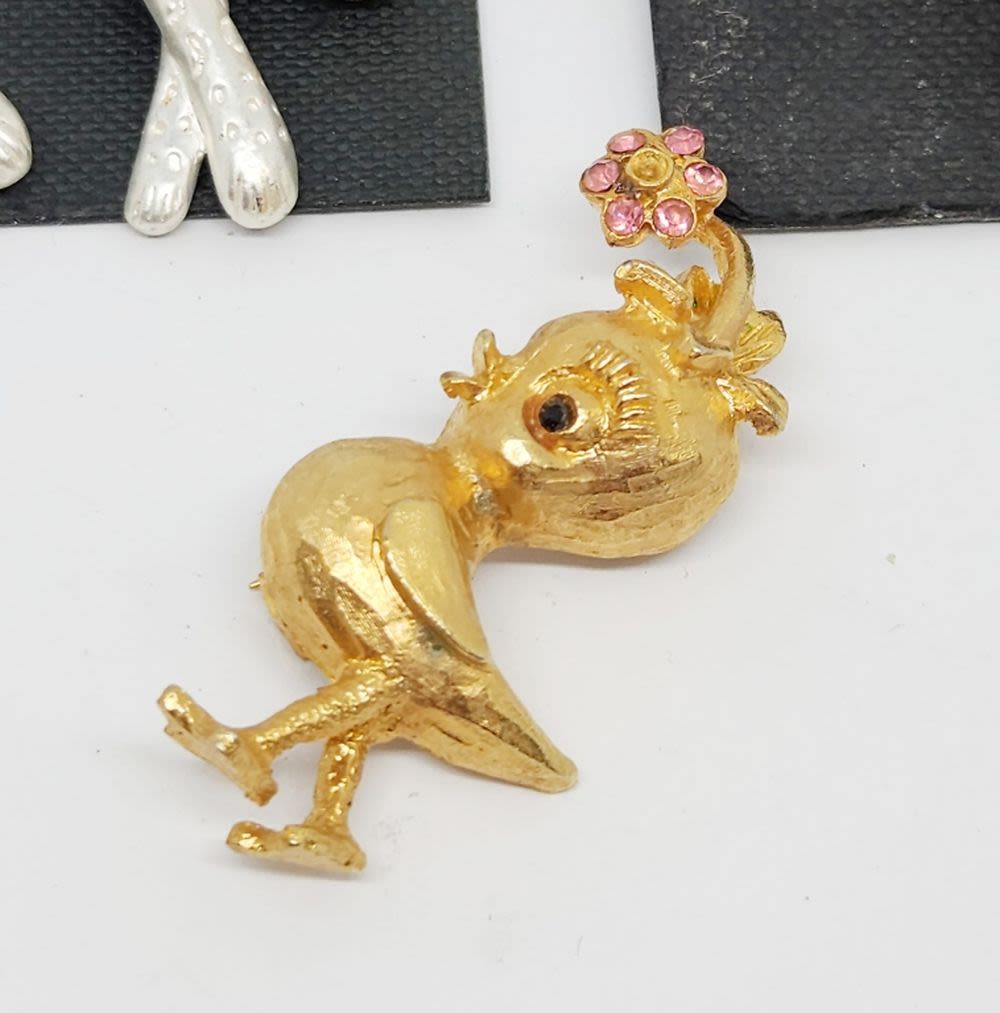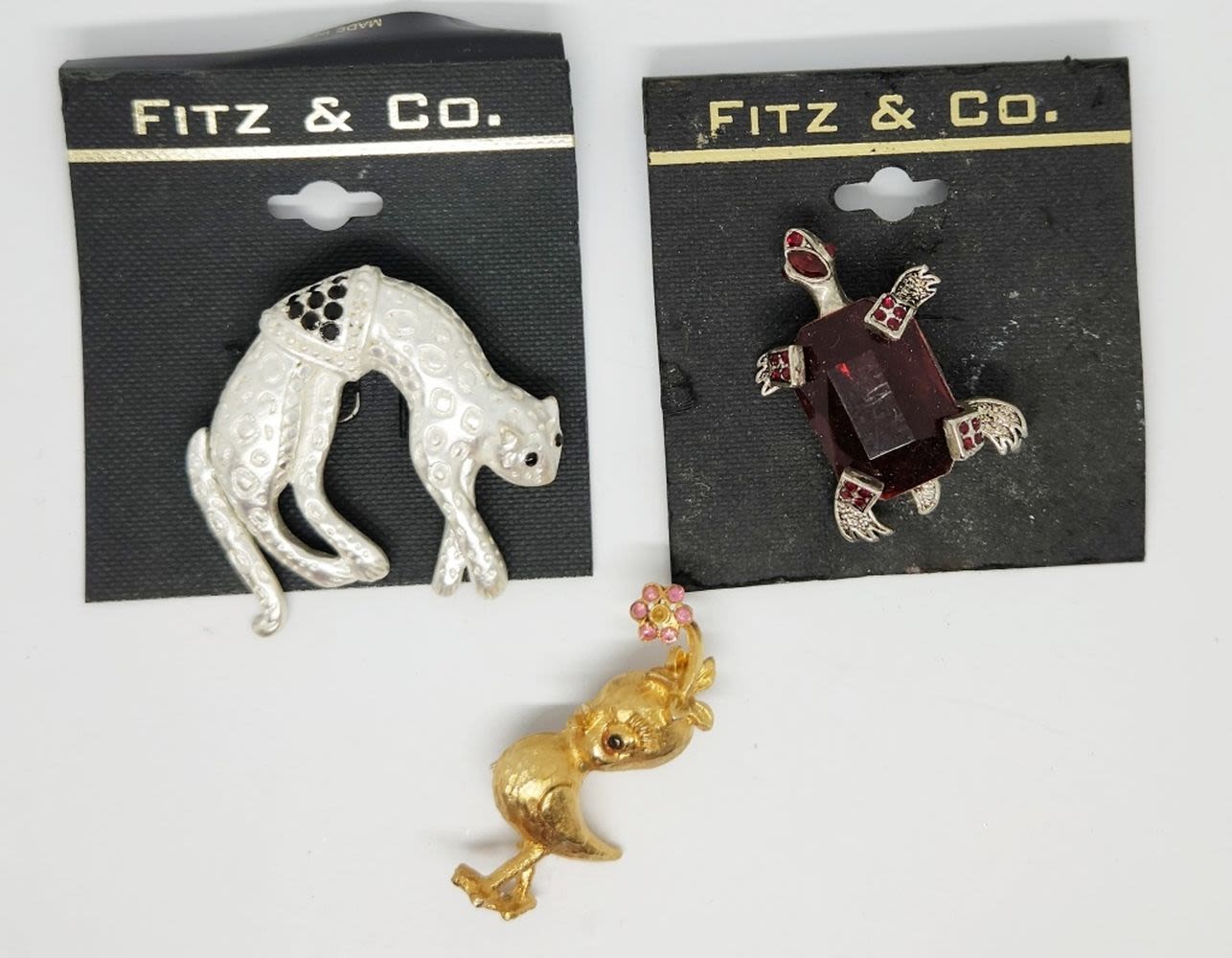FITZ AND CO BROOCHES , TURTLE , LARGE CAT, OTHER SMALL BIRD BROOCH