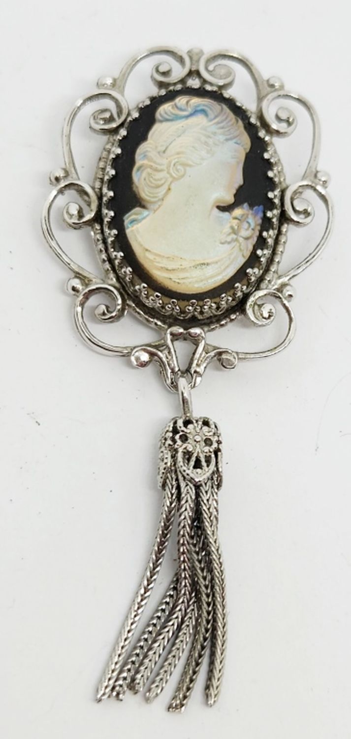 AMAZING CAMEO BROOCH WITH DANGLE, REALLY LIGHTS THROUGH THE FACE, SO PRETTY