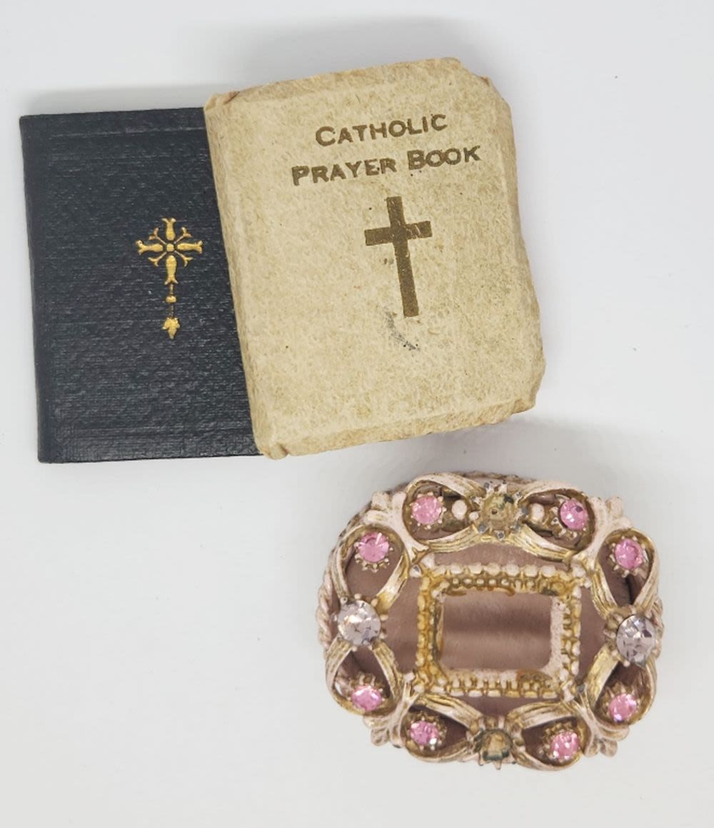 VINTAGE PRAYER BOOKS AND TRINKET BOX WITH LINER