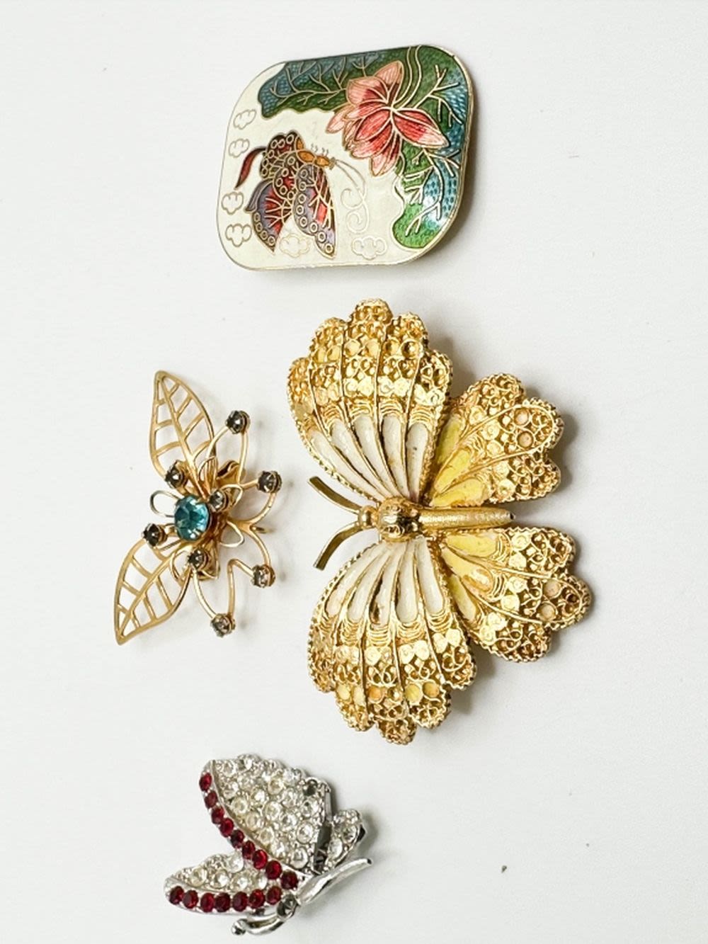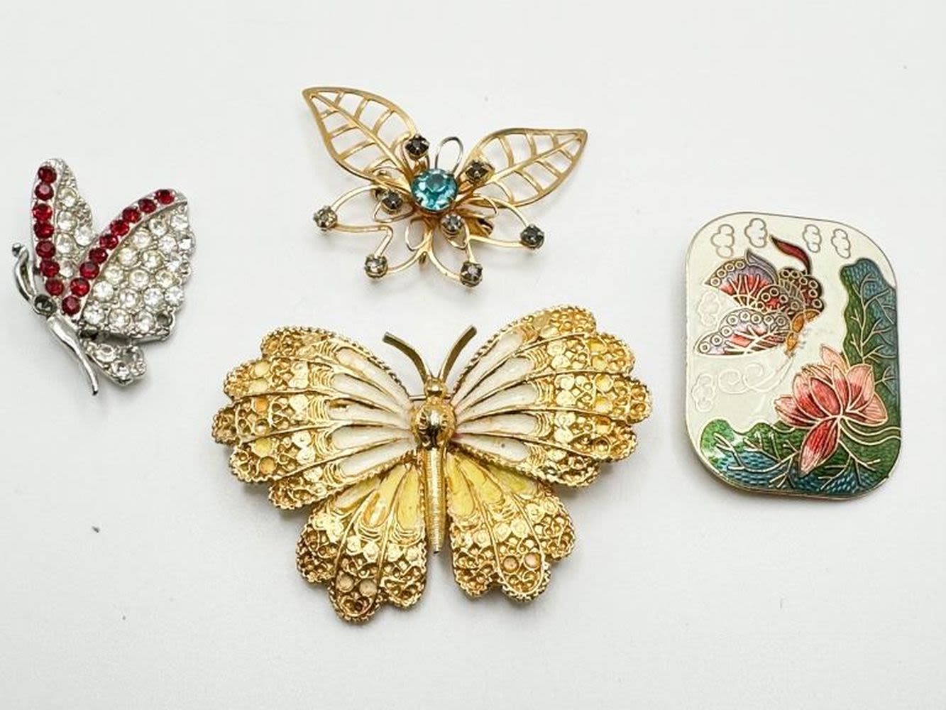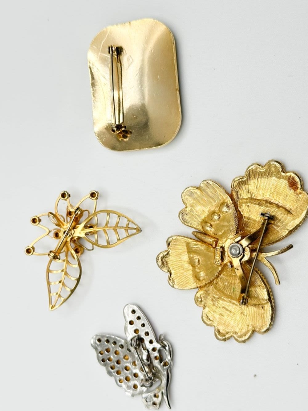 ART SIGNED BROOCH LRGE GOLD TONE BUTTERFLY AND OTHER BUTTERFLY BROOCHES