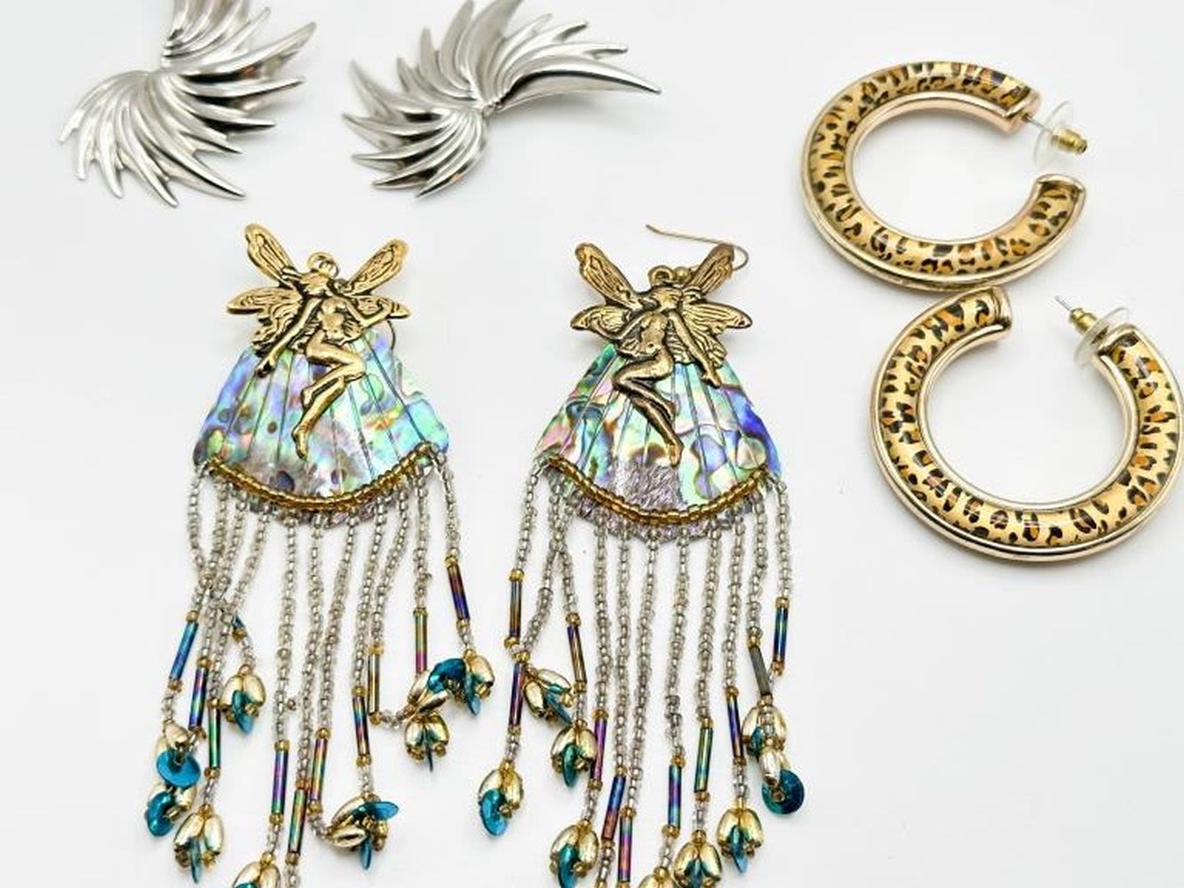LARGE FAIRY EARRINGS ST WITH DANGLES AND OTHR 2 SETS