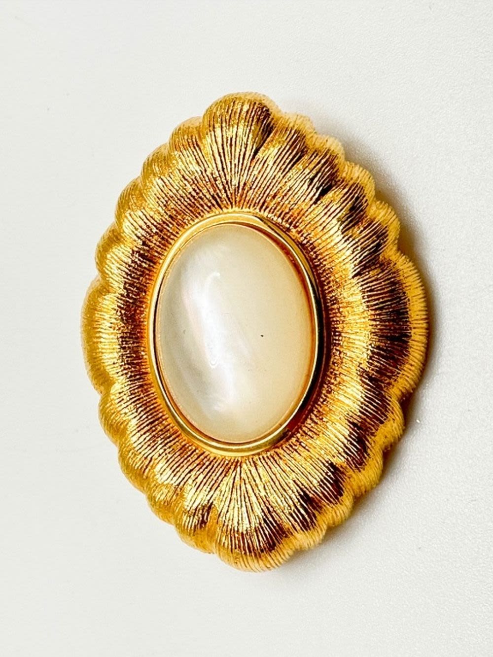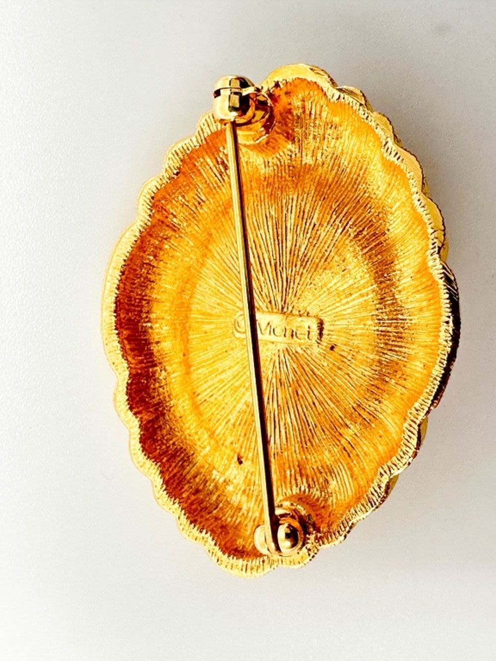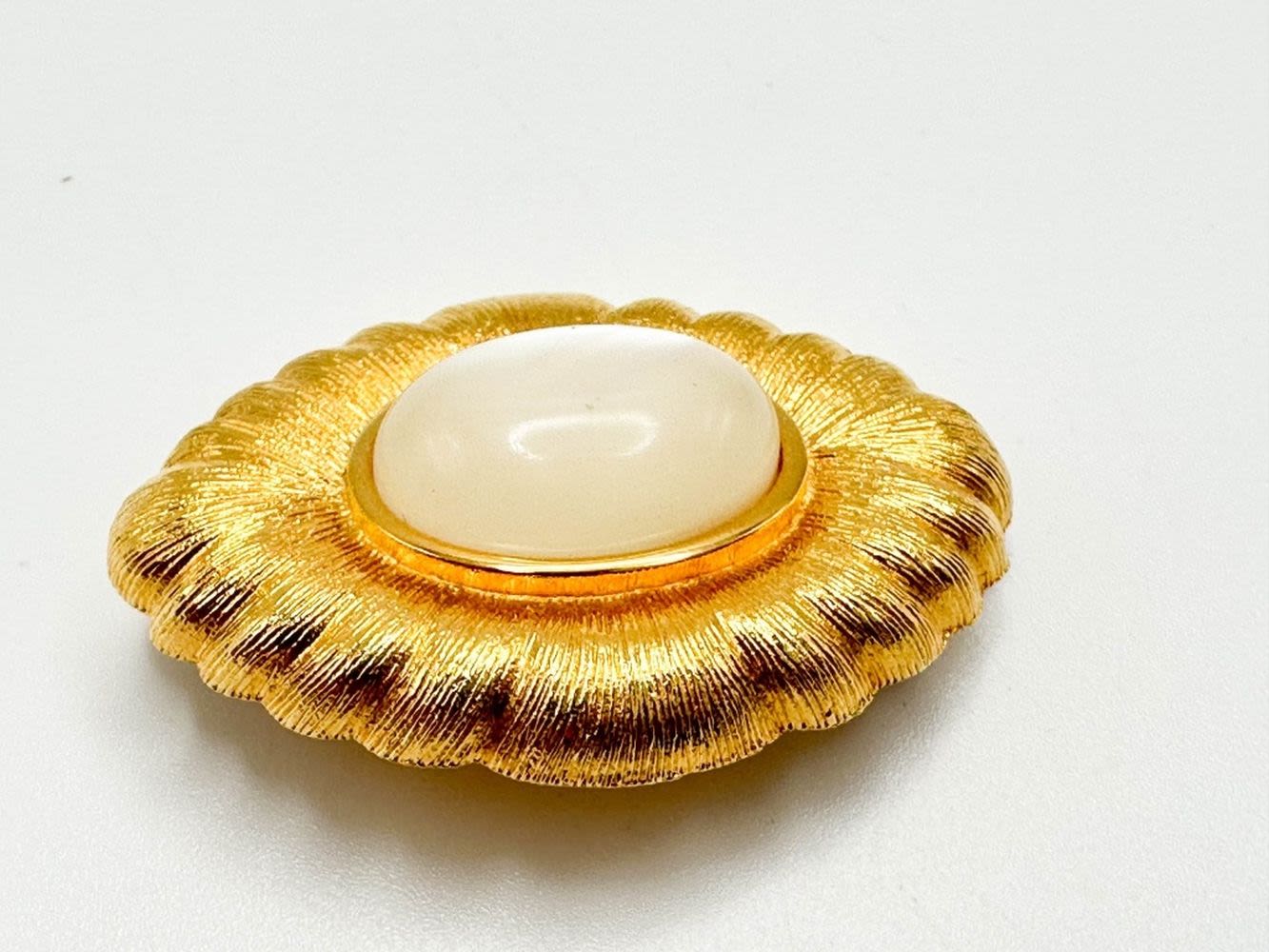 MONET SIGNED VINTAGE BROOCH WITH LARGE FAUX PEARL SETTING IN GOLD TONE