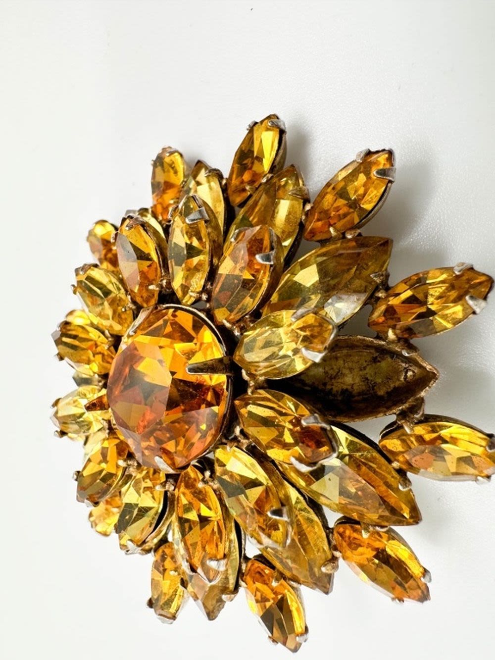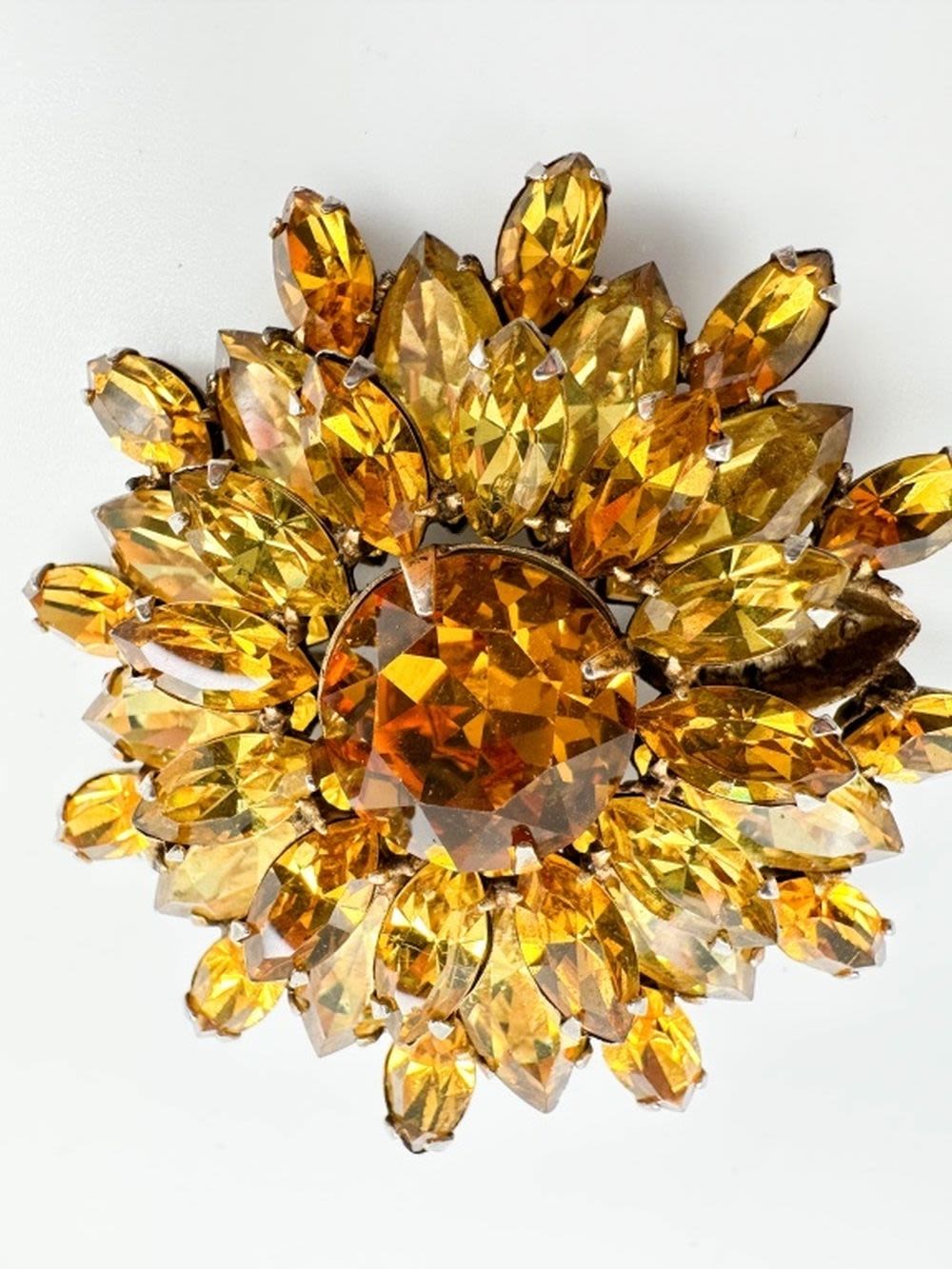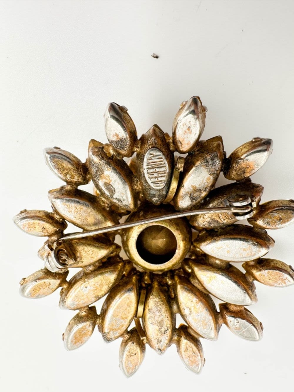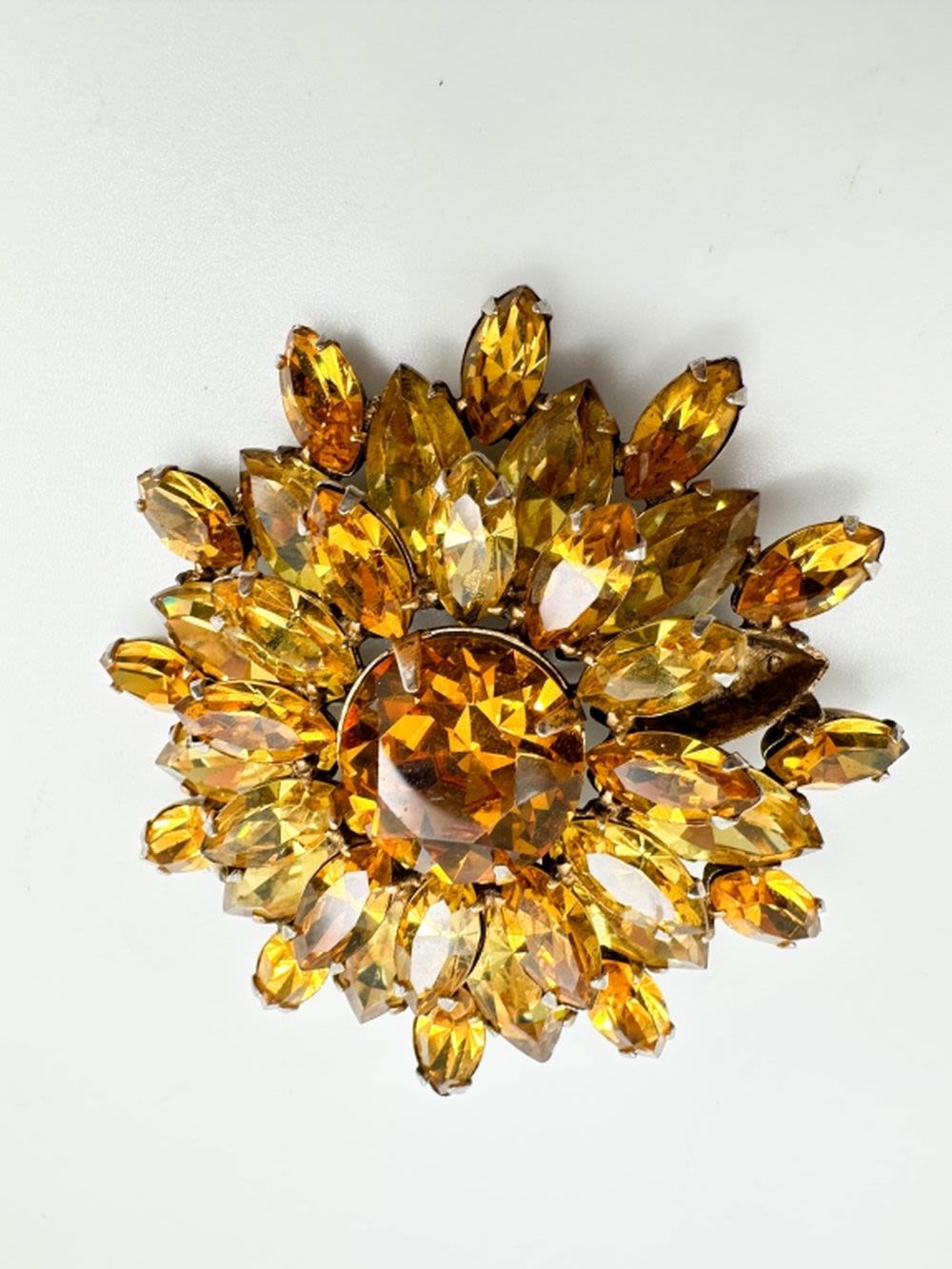 REGENCY SIGNED VINTAGE AMBER STONE BROOCH, MISSING STONES