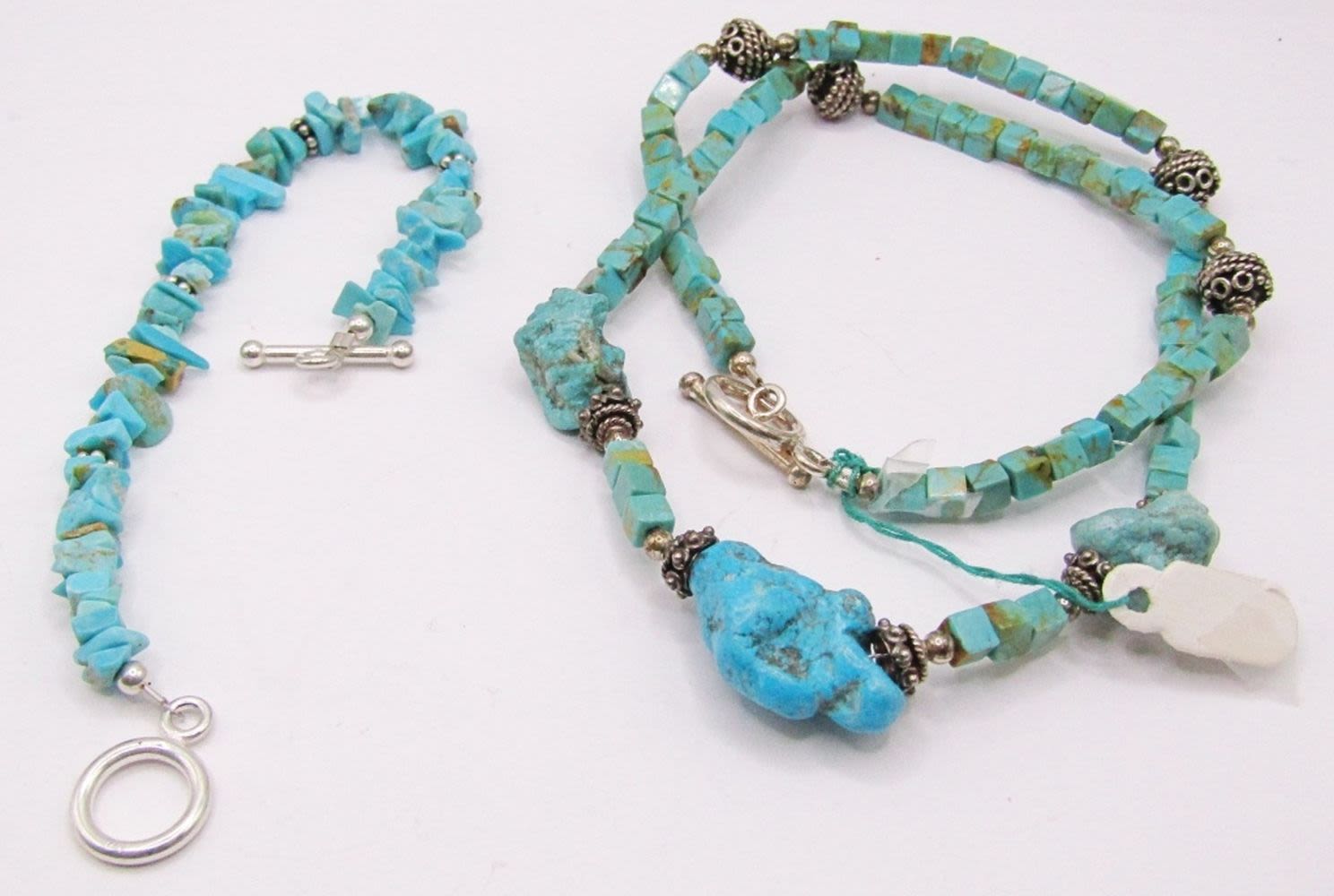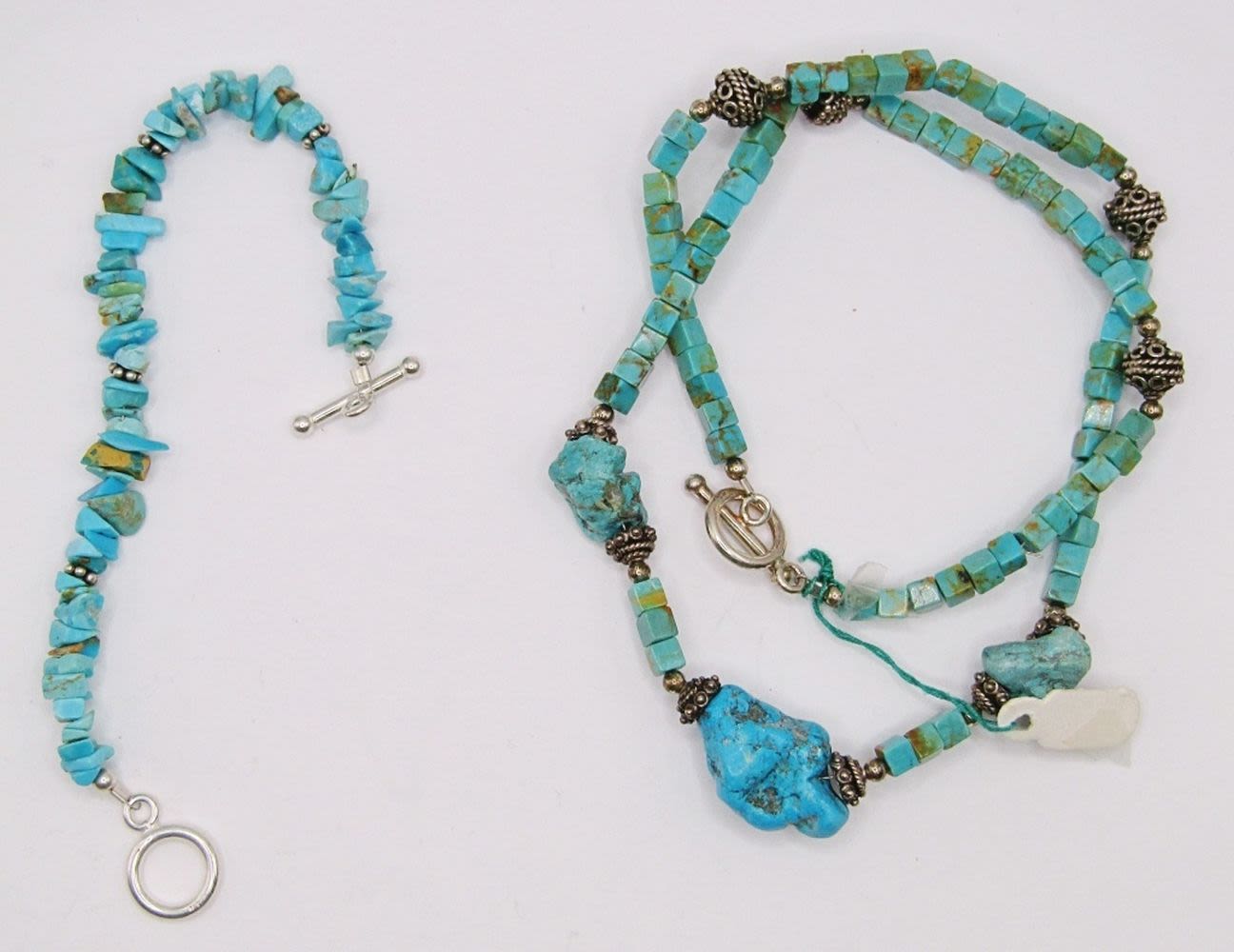 WITH STERLING BEAD ACCENTS & TOGGLE CLASP PLUS (1)CHIPPED TURQUOISE BEADED BRACELET WITH 925 SPACERS & TOGGLE CLASP-NECKLACE MEASURES 18.5 INCHES & BRACELET MEASURES 7.5 INCHES-TOTAL 23 DWT