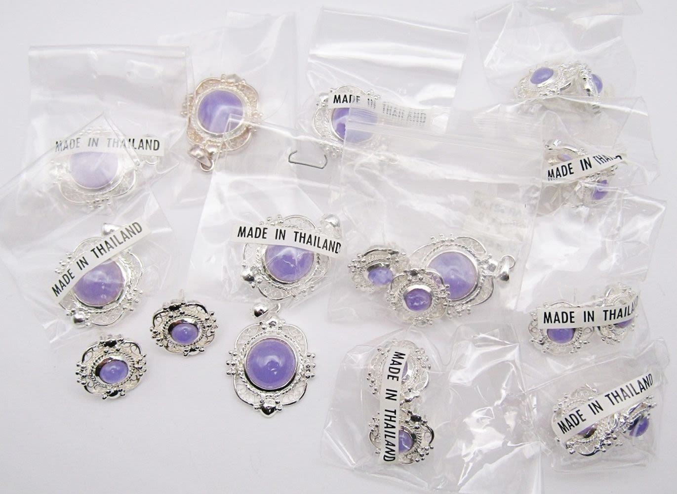 7-SETS! SILVER TONED PENDANT WITH AMETHYST