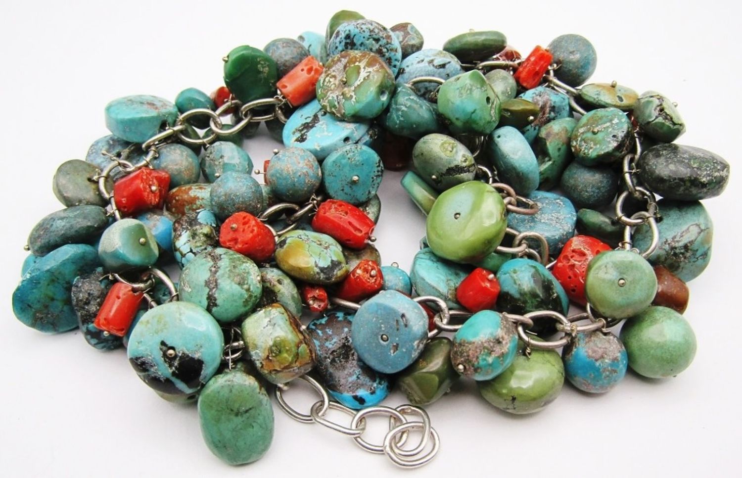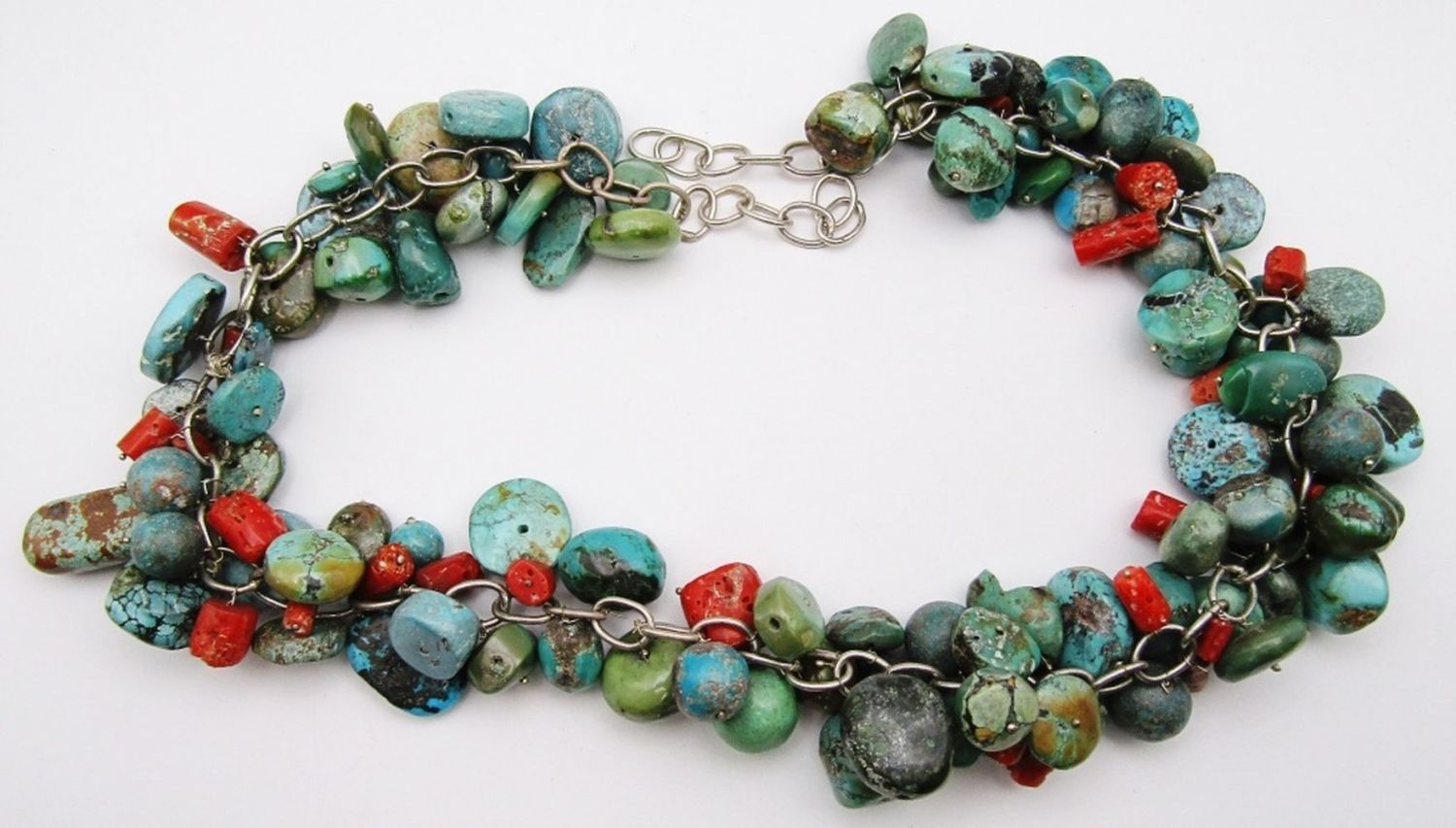 TURQUOISE & RED CORAL STONES (NEEDS A NEW CLASP)-TOTAL 153 DWT