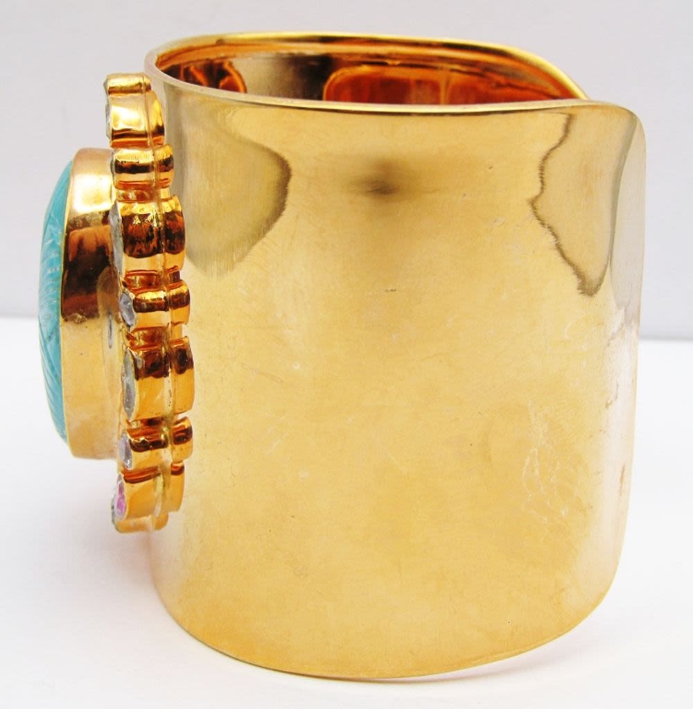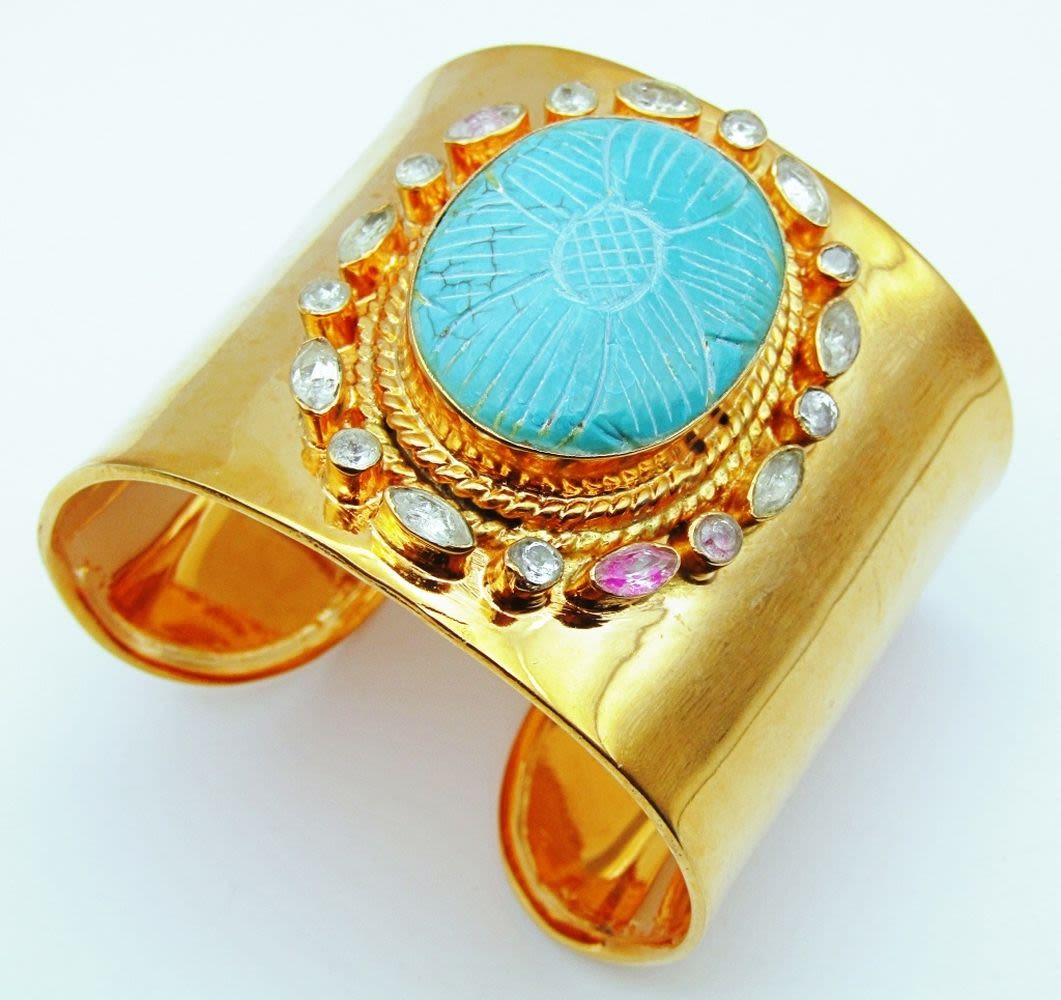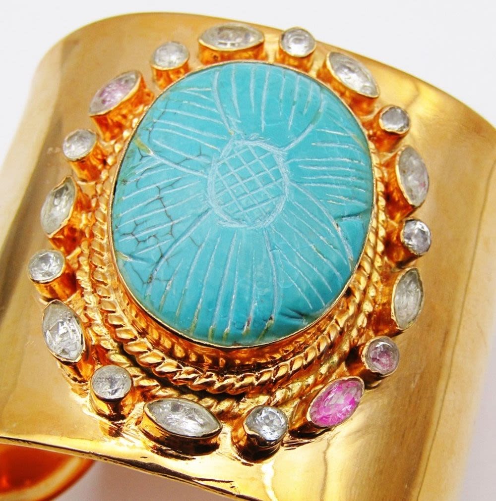 TURQUOISE CENTER STONE-CLEAR STONE AROUND BORDER-MEASURES 7.5 INCHES WITH GAP-TOTAL 35 DWT