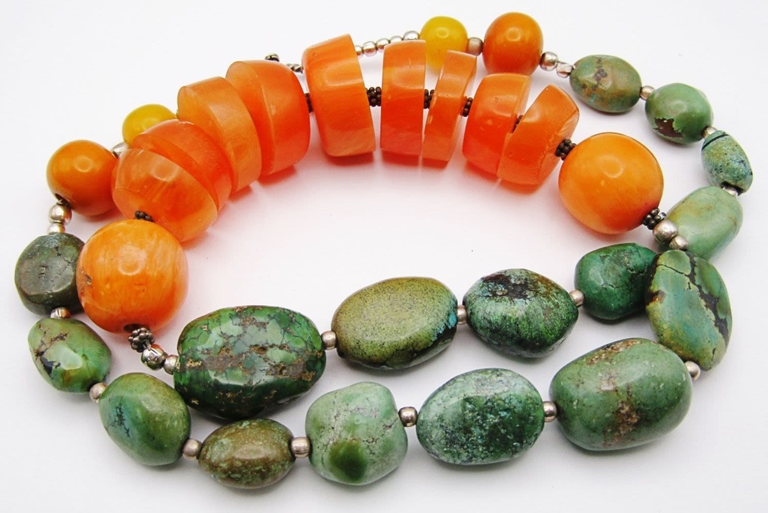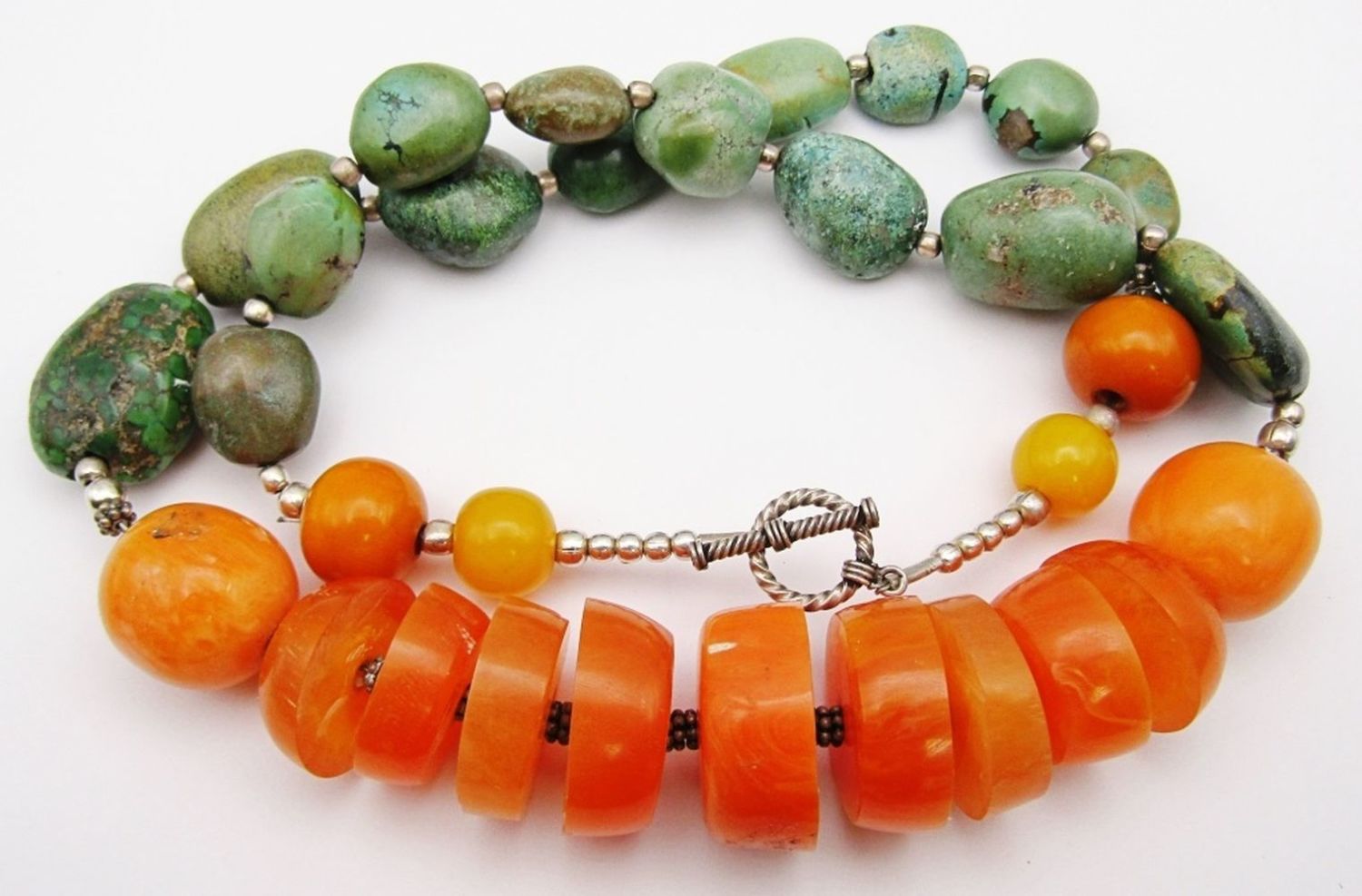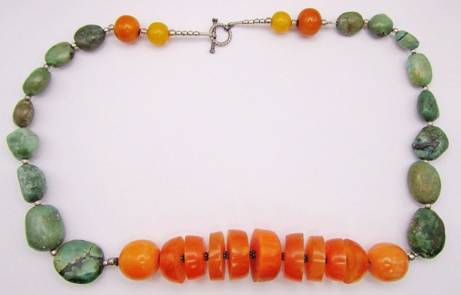 WITH NATURAL GREEN TURQUOISE – AFRICAN STYLE NECKLACEwith STERLING BEADS / CLASP