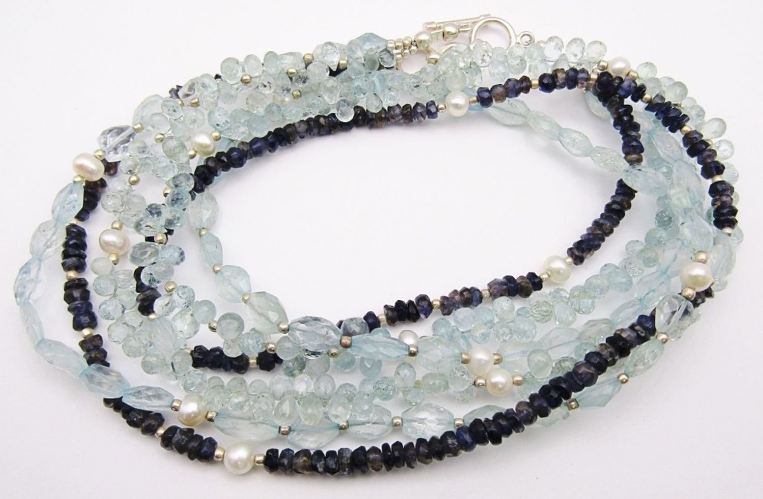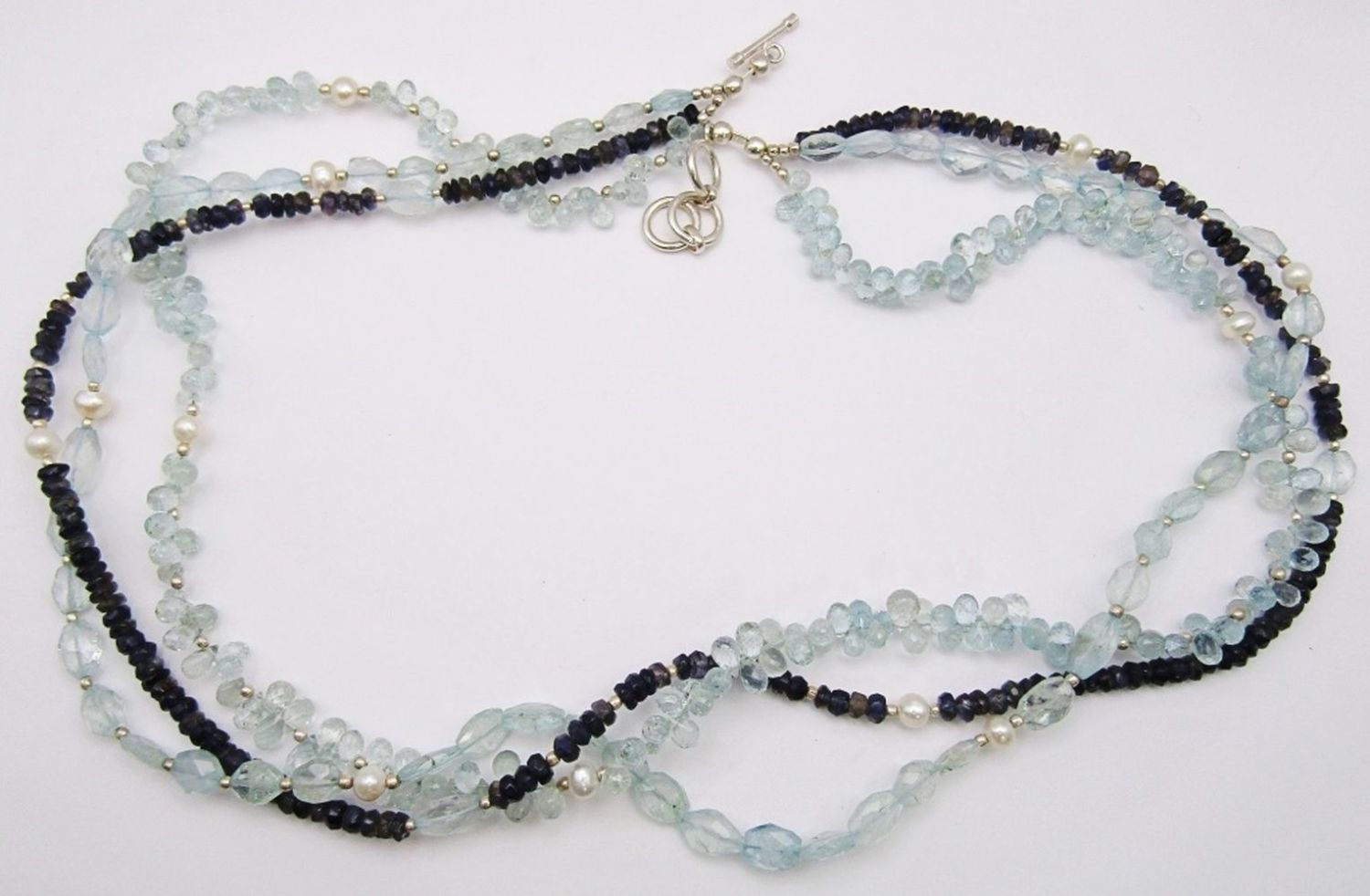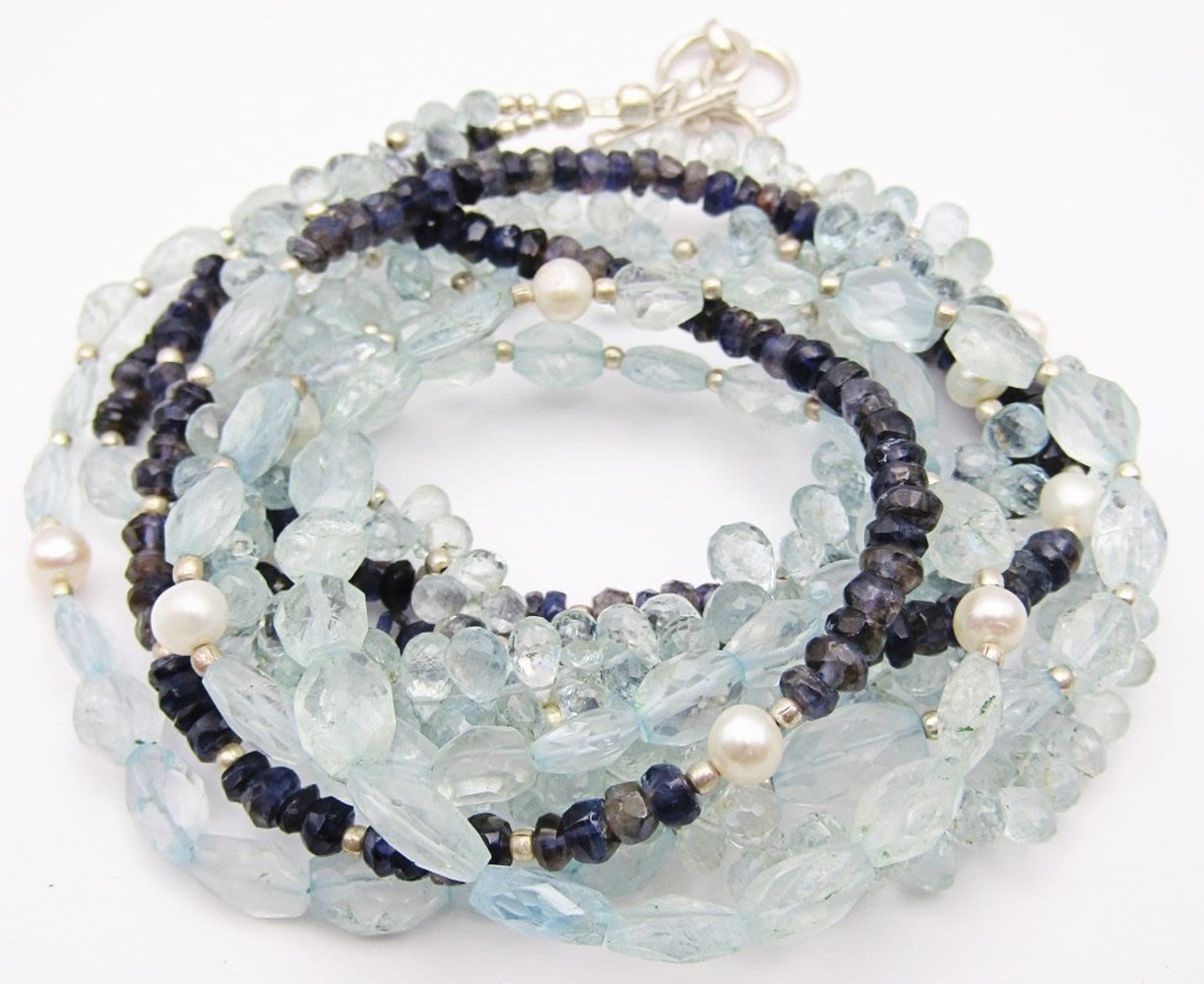 WITH NATURAL STONES & STERLING BEADS / CLASP 25″ LONG – LIKE NEW –