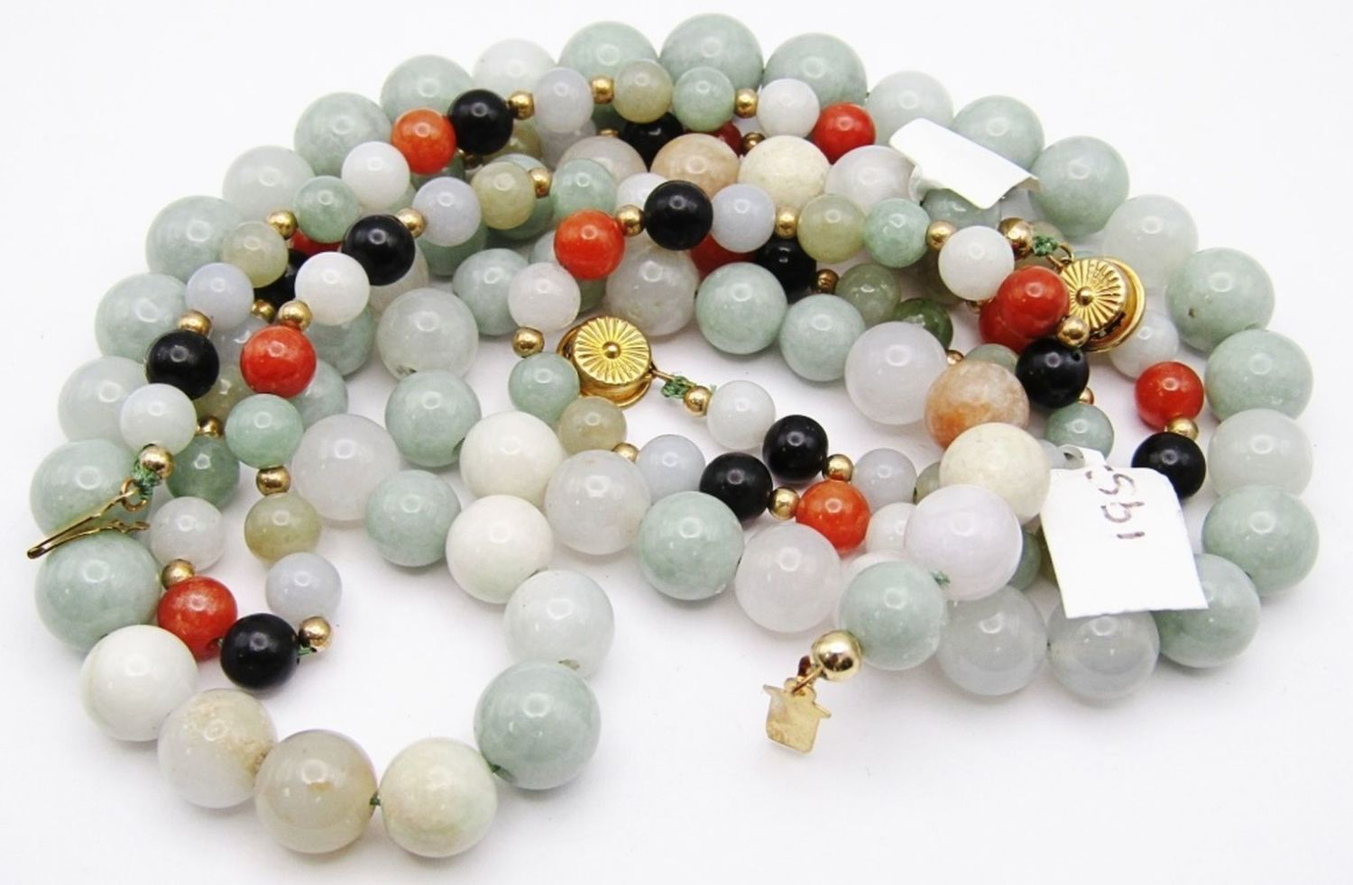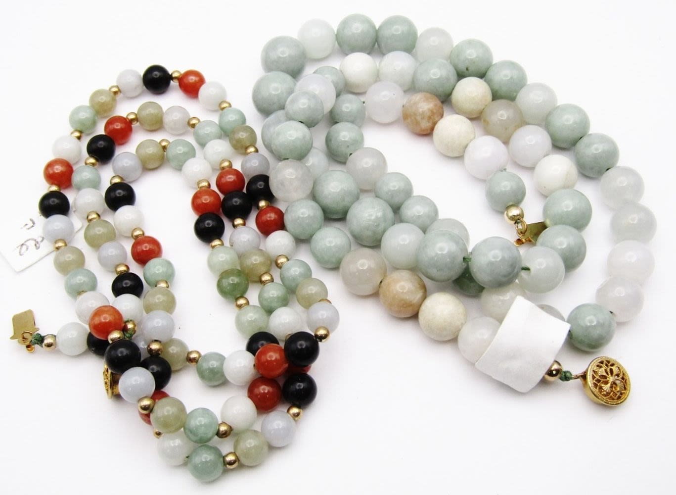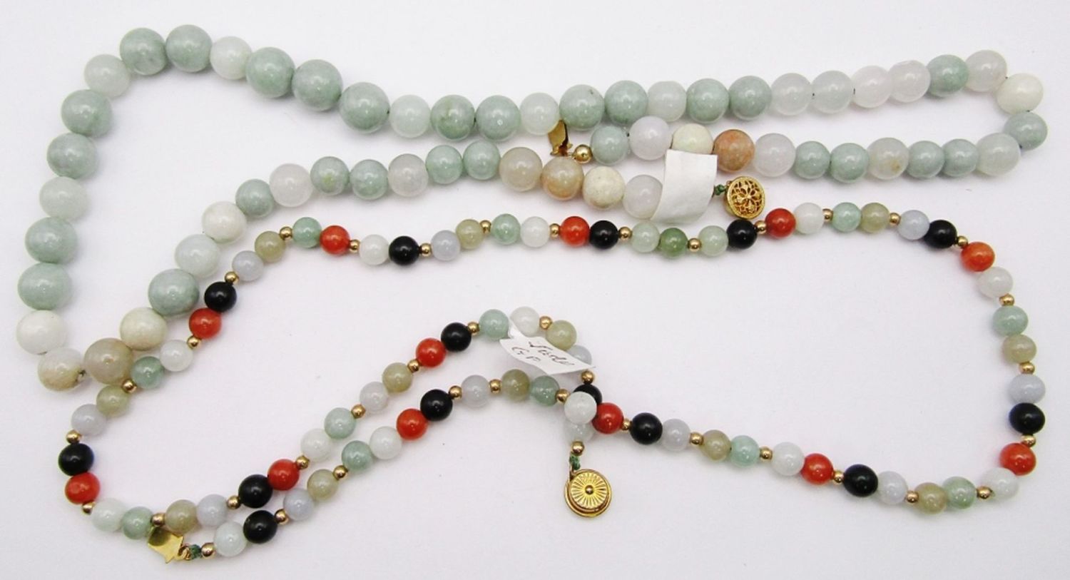 HAND CRAFTED LIKE NEW – 23″ LONG MULTI-COLORED & 22″ LONG TRADITION COLOR with STERLING GOLD TONED CLASP & BEADS