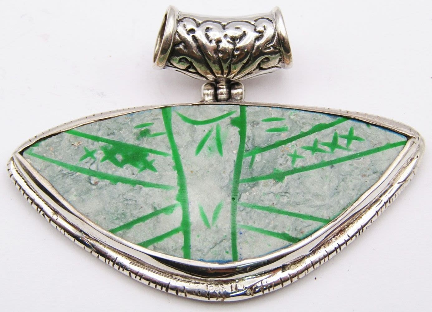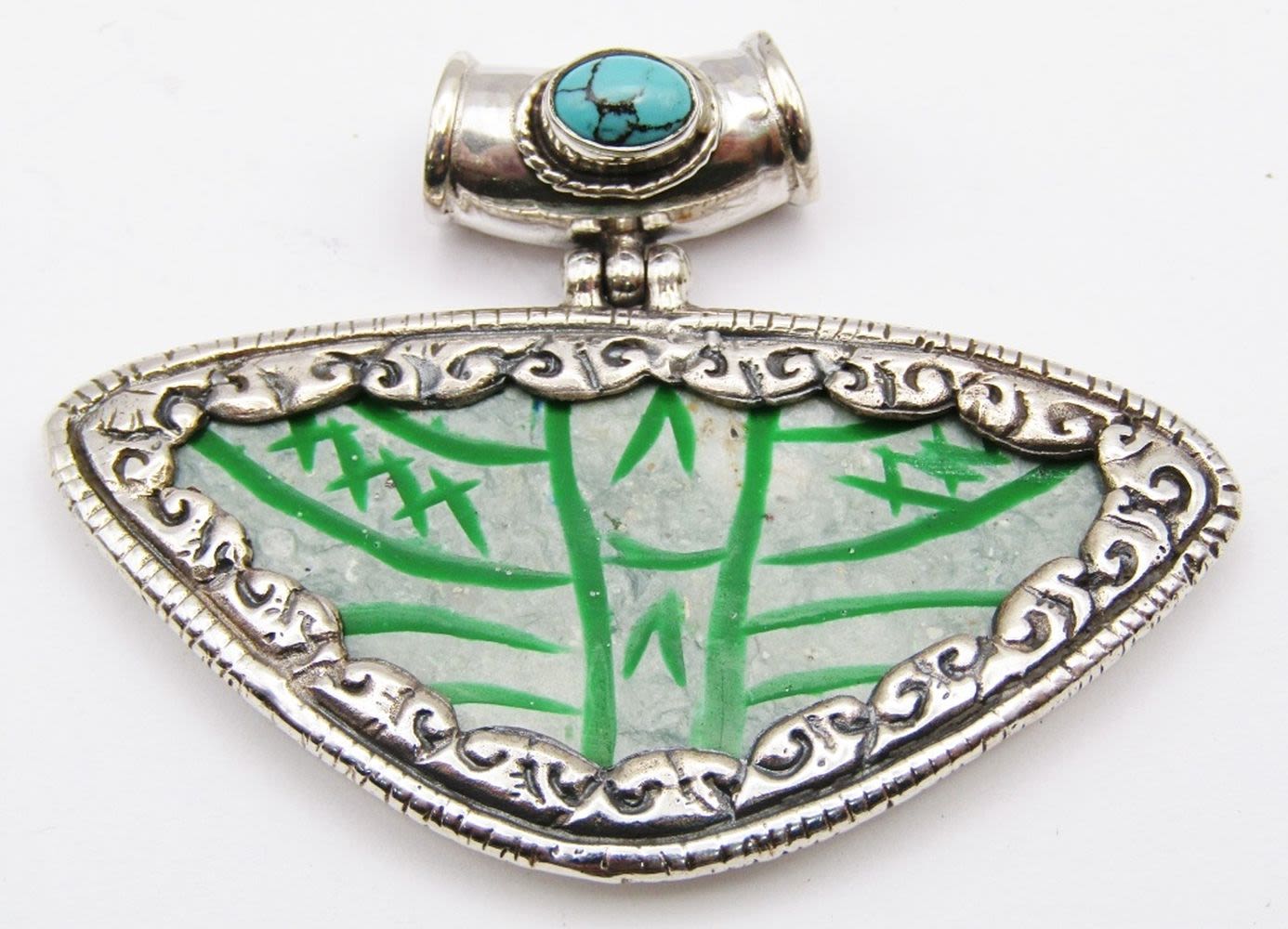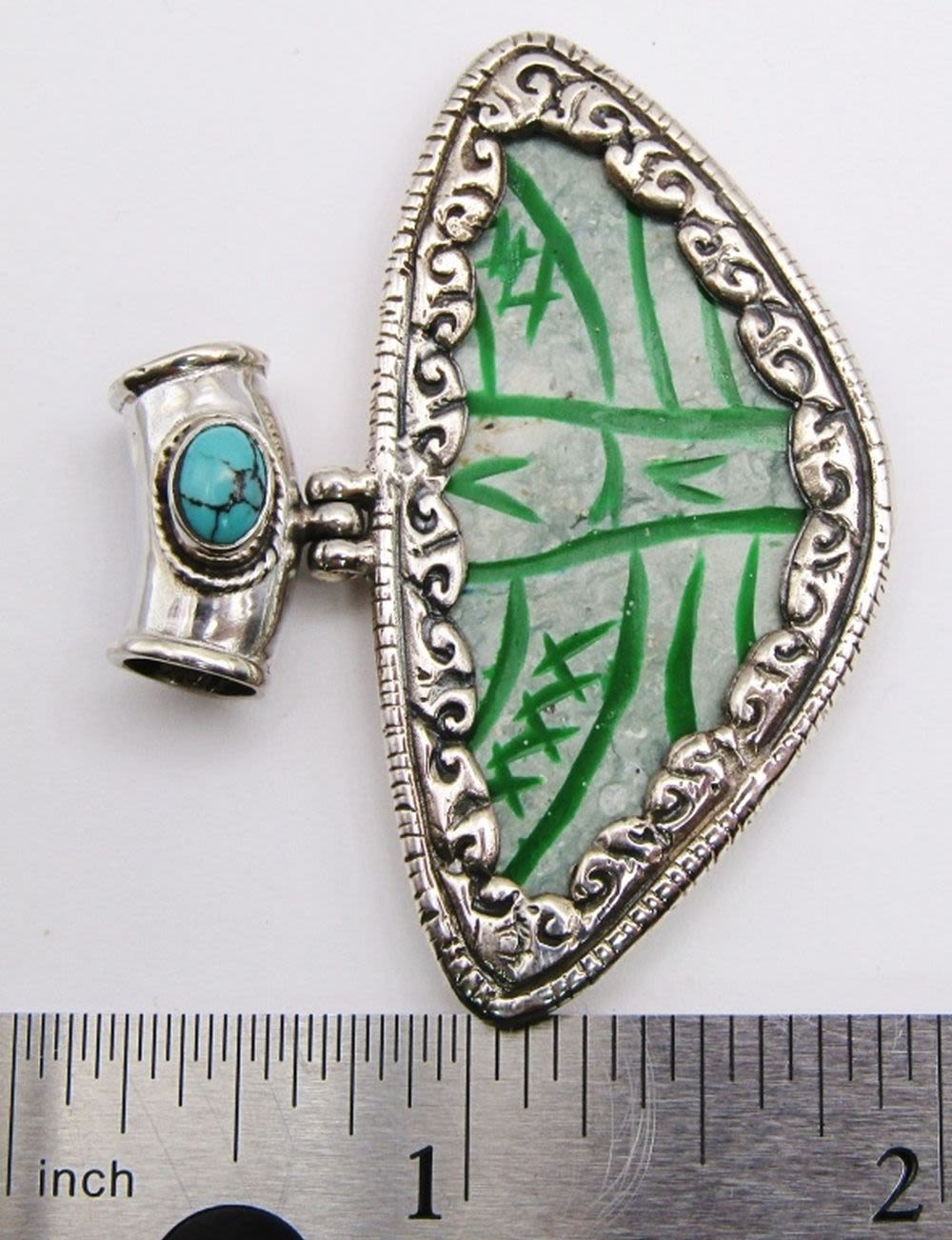 CARVED STONE CENTER-SMALL TURQUOISE STONE ACCENT-TOTAL 14 DWT