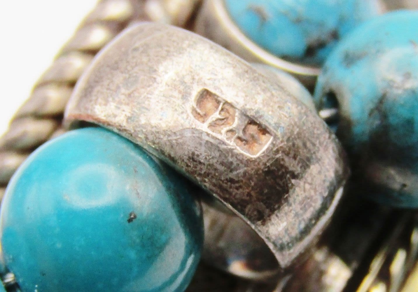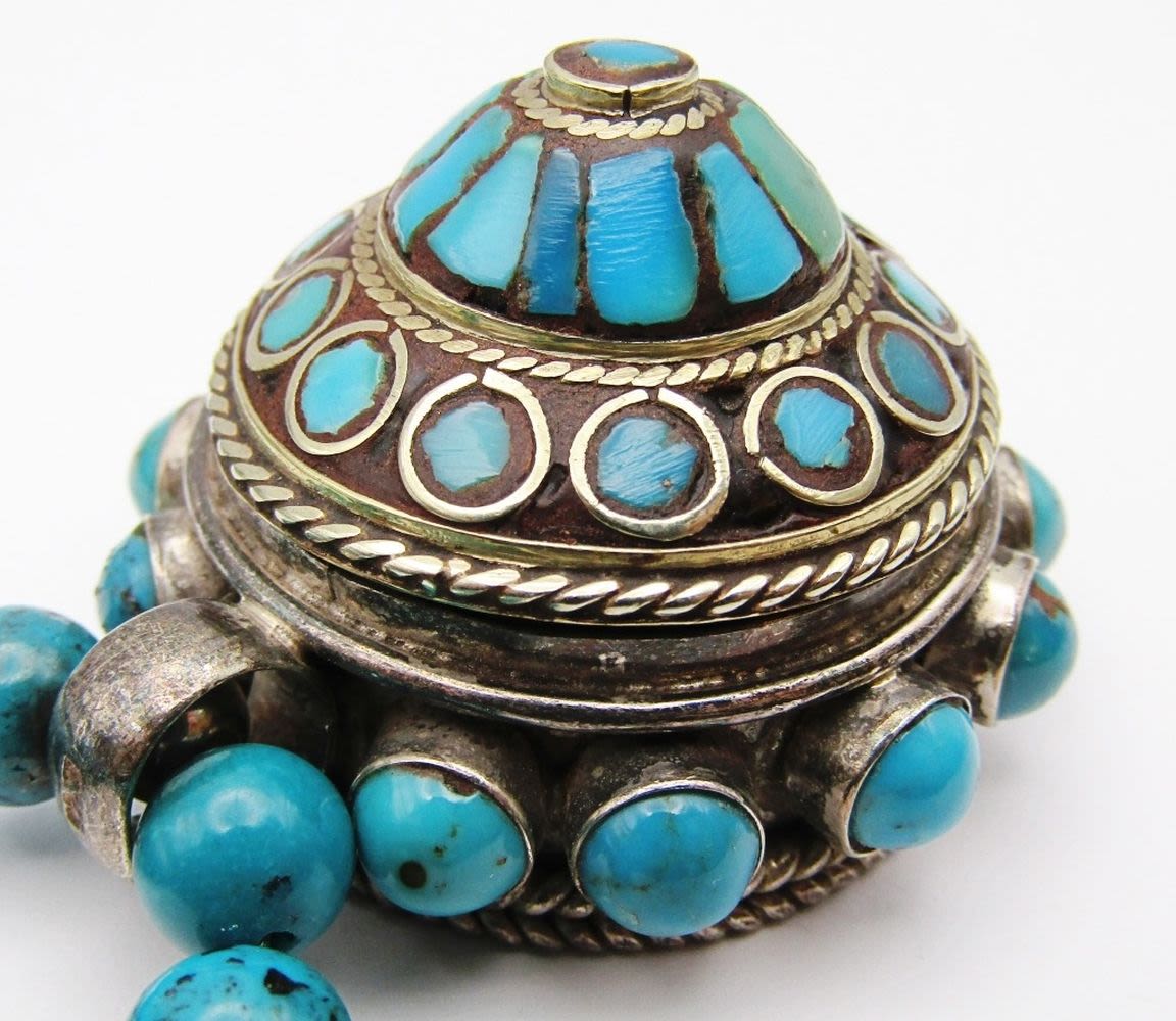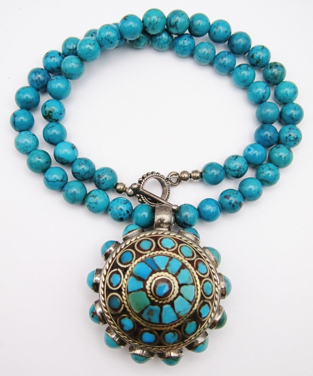 STERLING 3-D DOME PENDANT LOADED WITH TURQUOISE-925 CLASP-MEASURES 17.5 INCHES-TOTAL 45 DWT