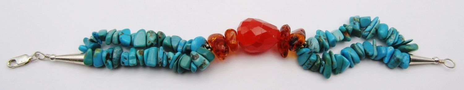 BEADED BRACELET WITH BALTIC AMBER STONE ACCENTS-MEASURES 7 INCHES