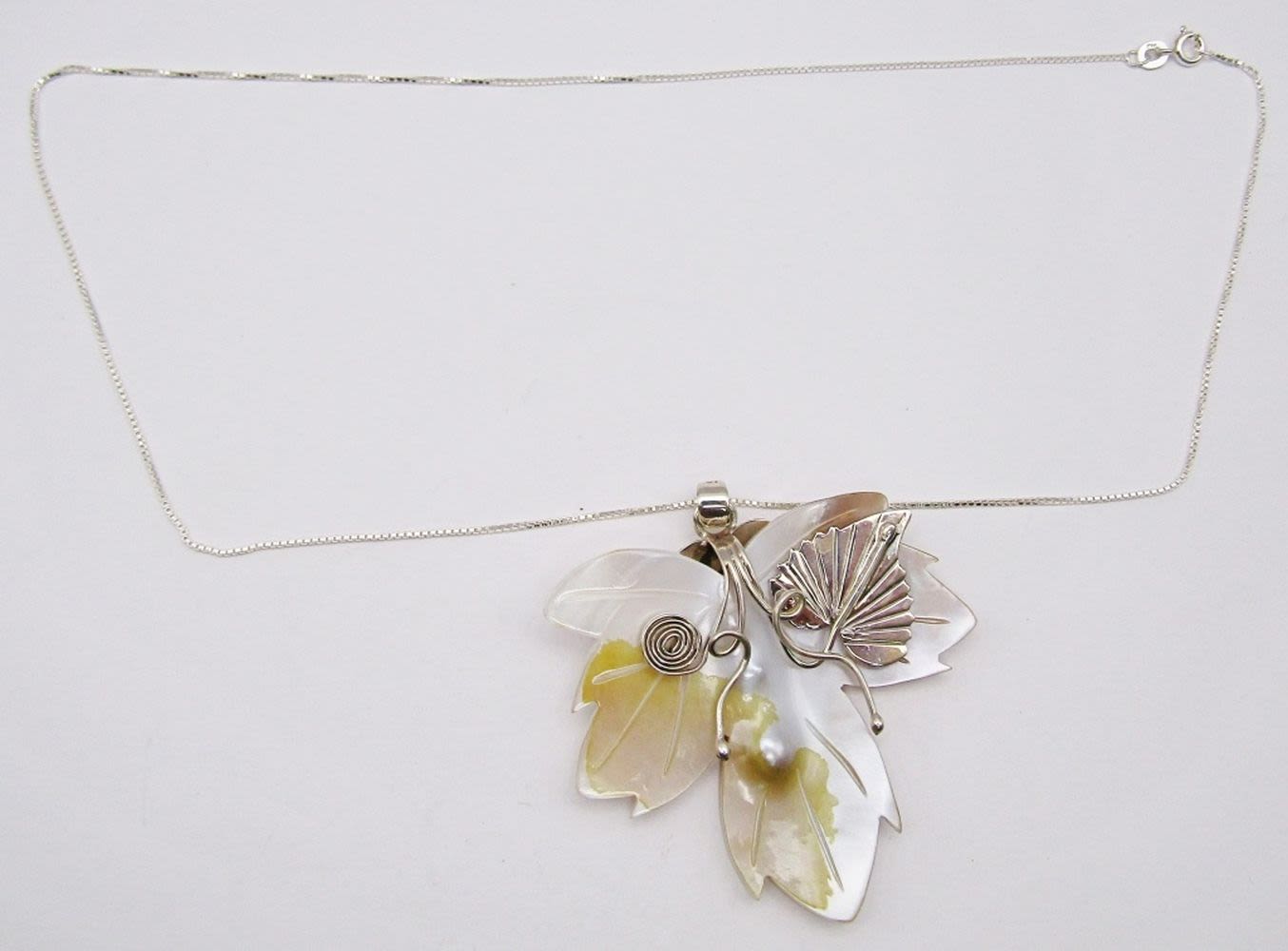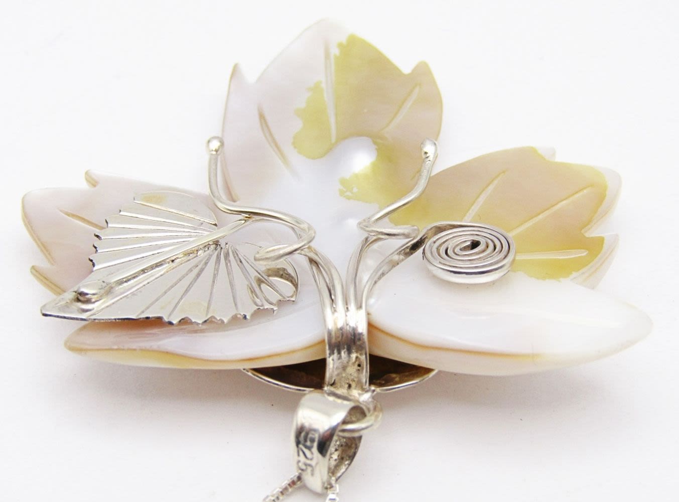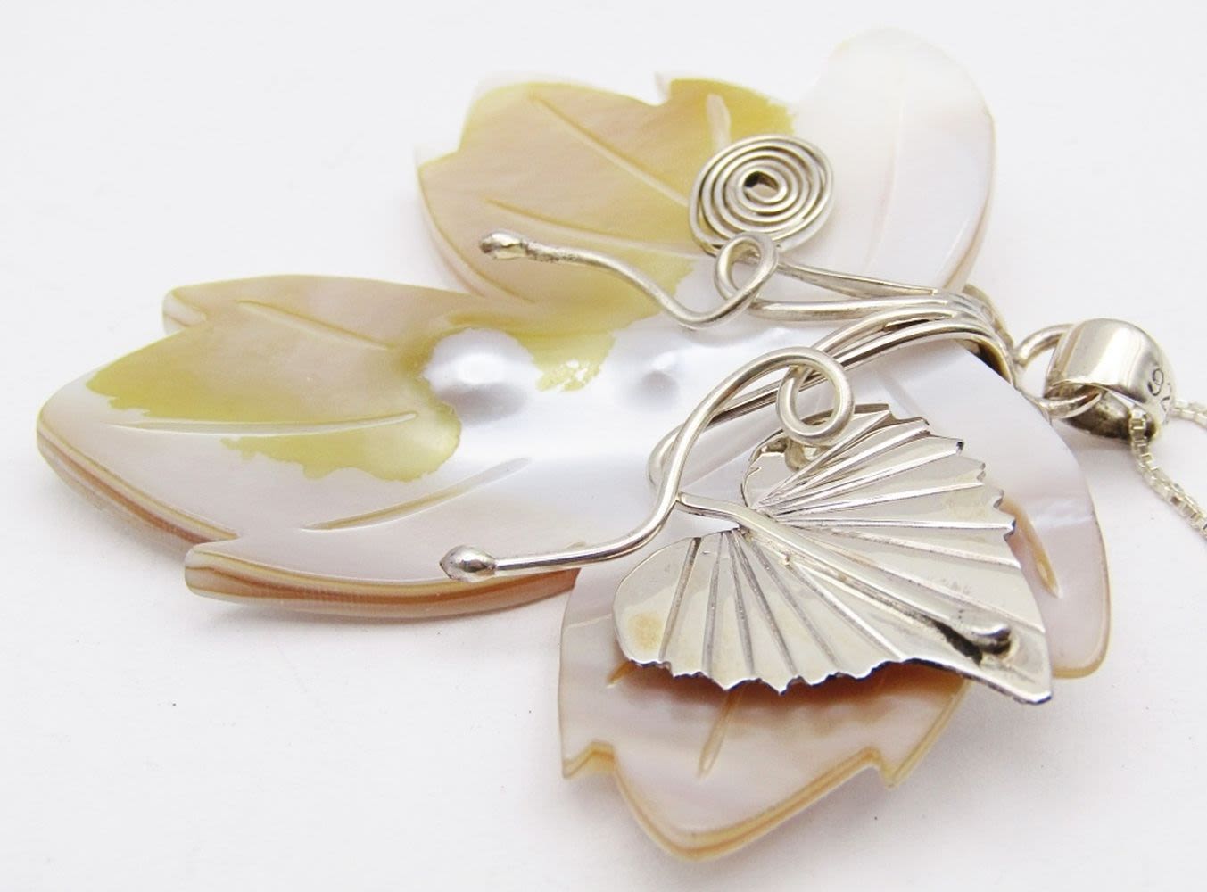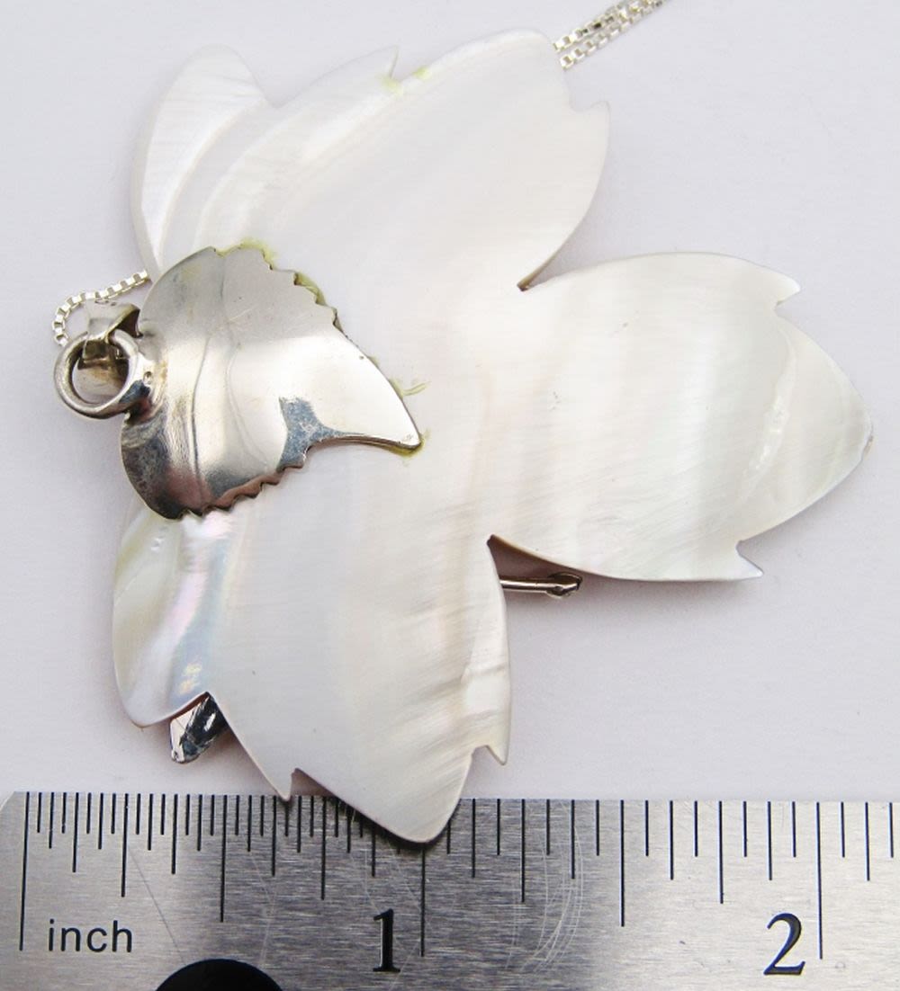 CARVED SHELL FLOWER PENDANT WITH STERLING