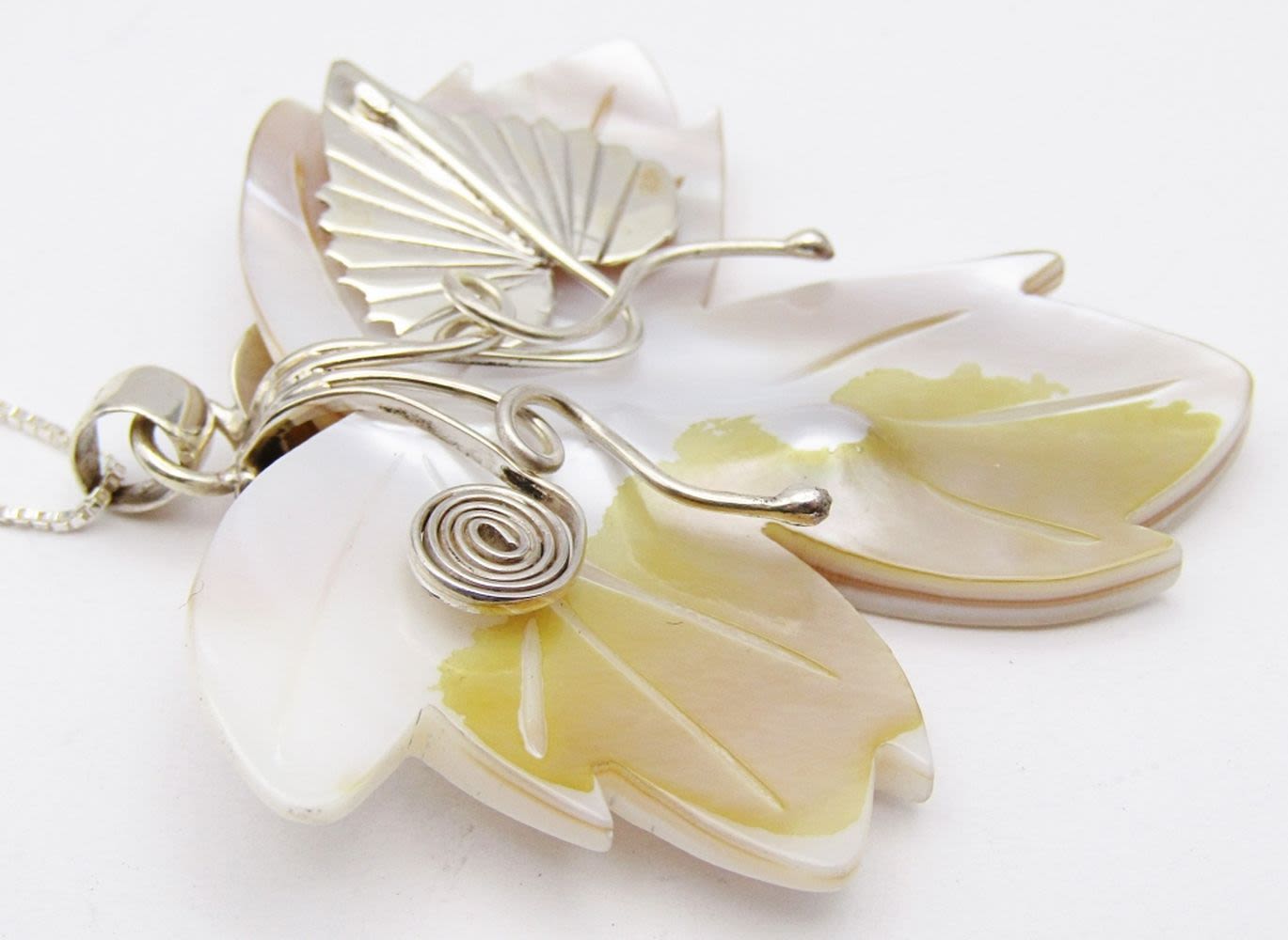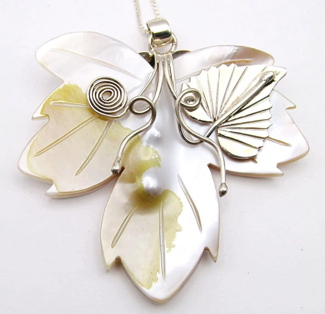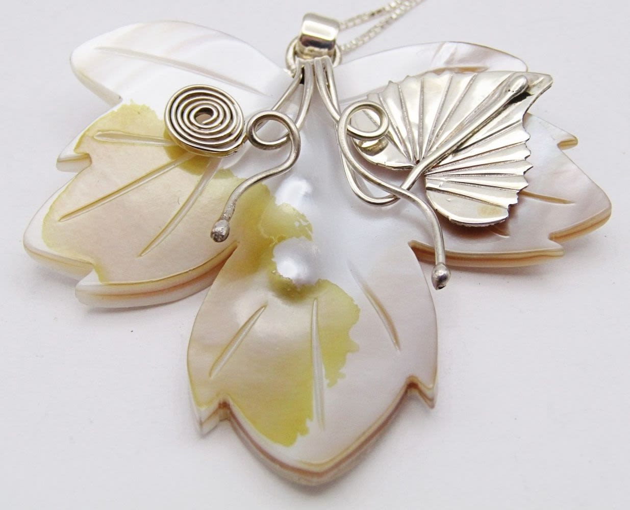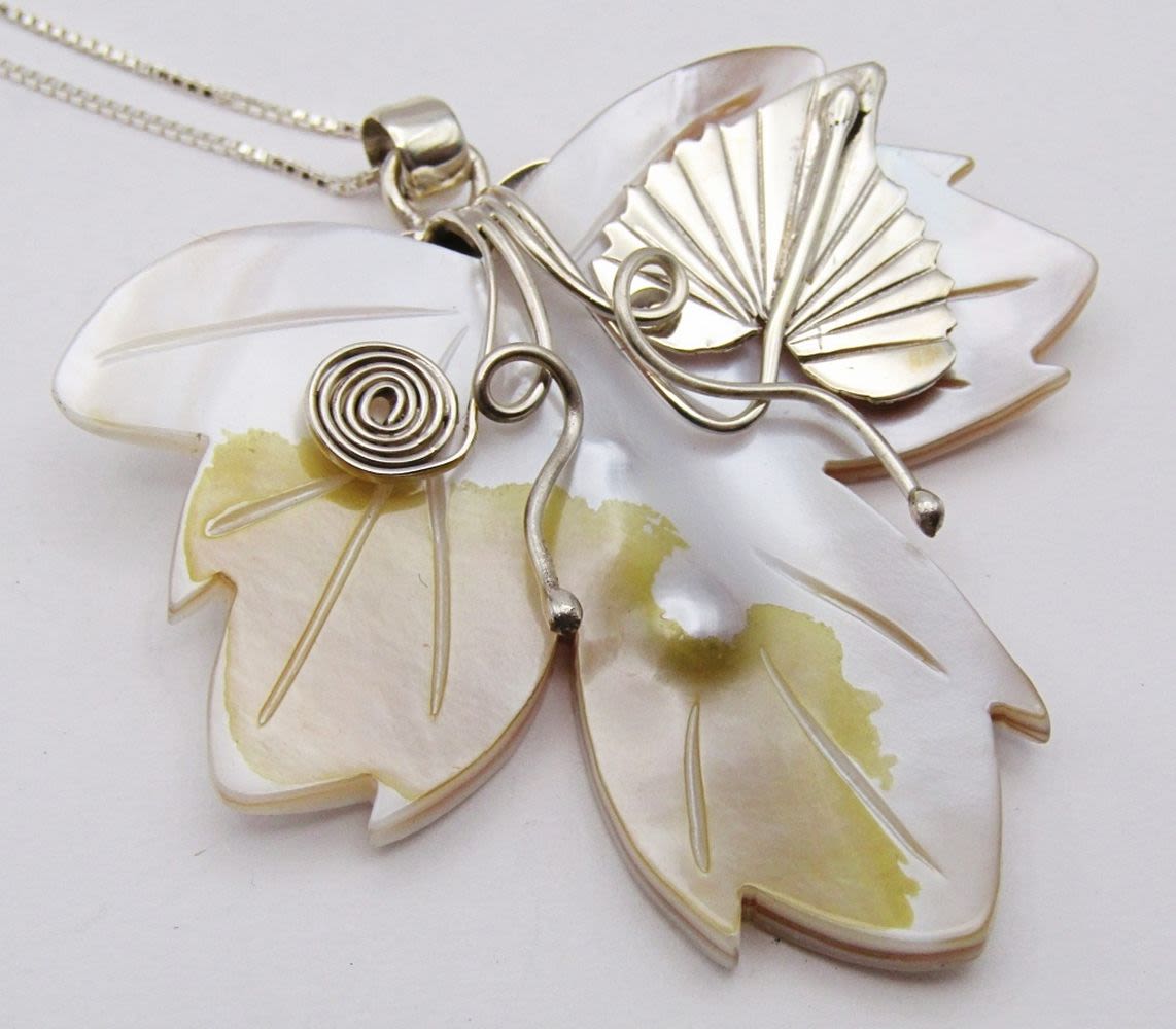 CARVED SHELL FLOWER PENDANT WITH STERLING