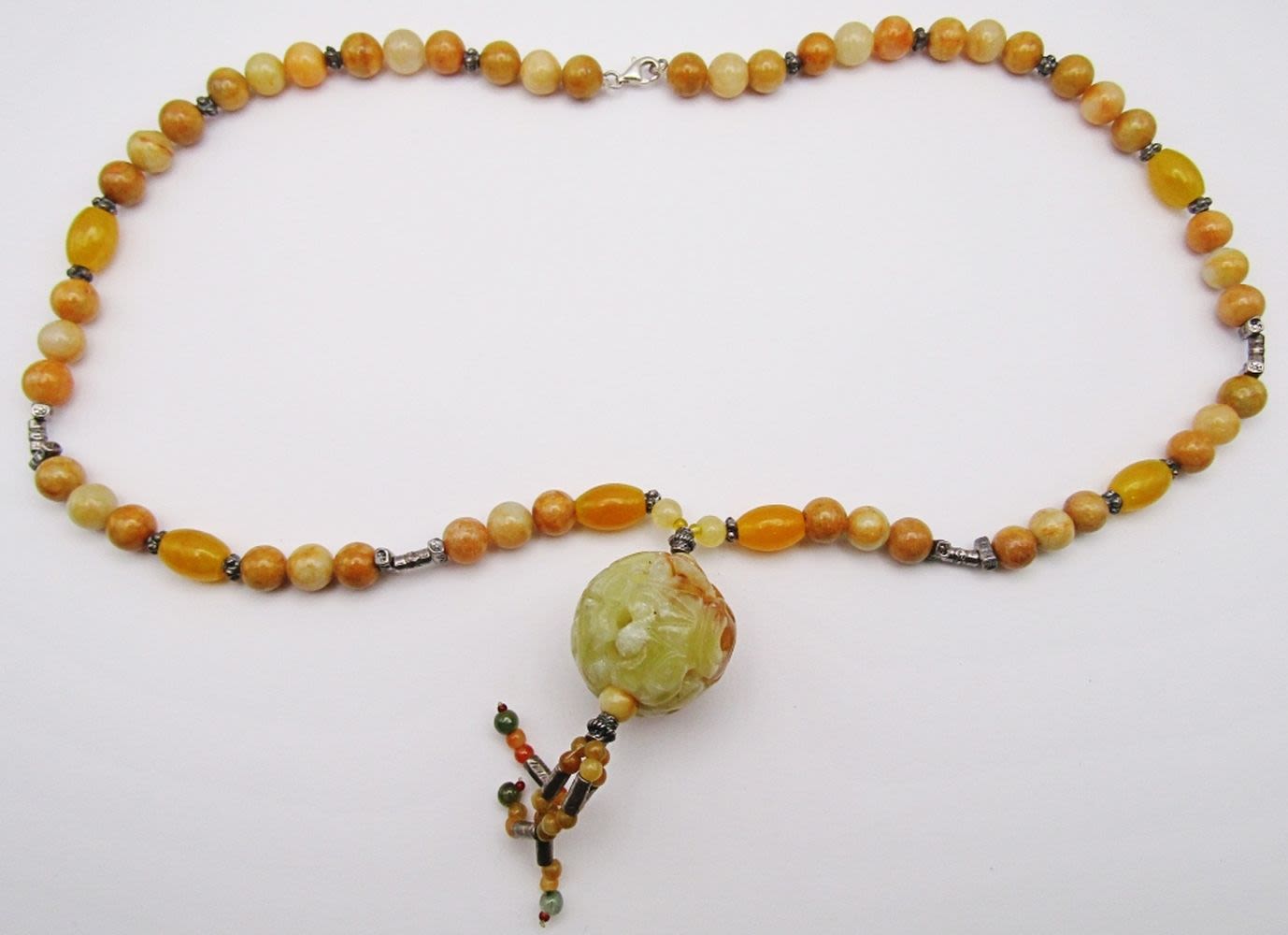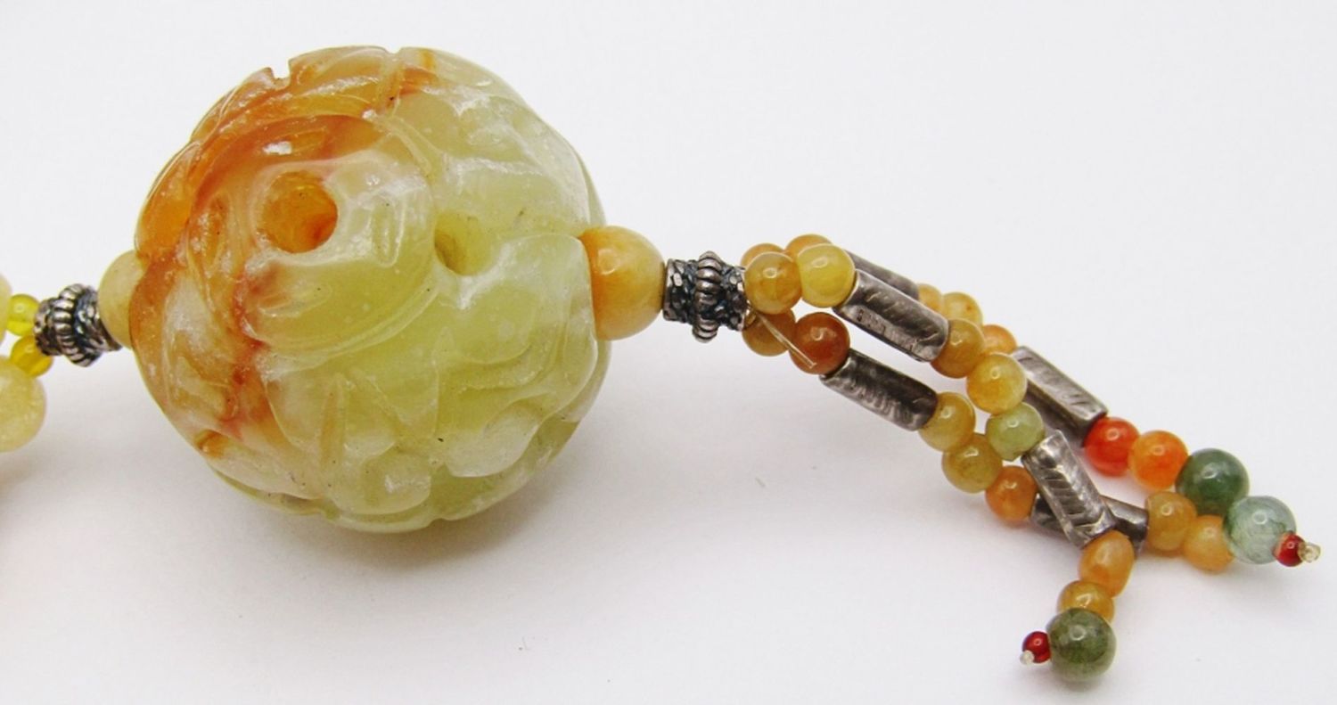 WITH CARVED JADE 3-D CIRCULAR PENDANT-MEASURES 22 INCHES-TOTAL 52 DWT