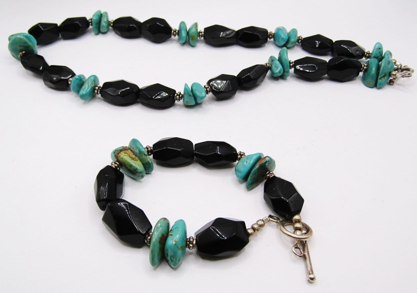 WITH STERLING BEADS AND CLASP-COMES WITH MATCHING BRACELET-NECKLACE MEASURES 18 INCHES & BRACELET MEASURES 8 INCHES