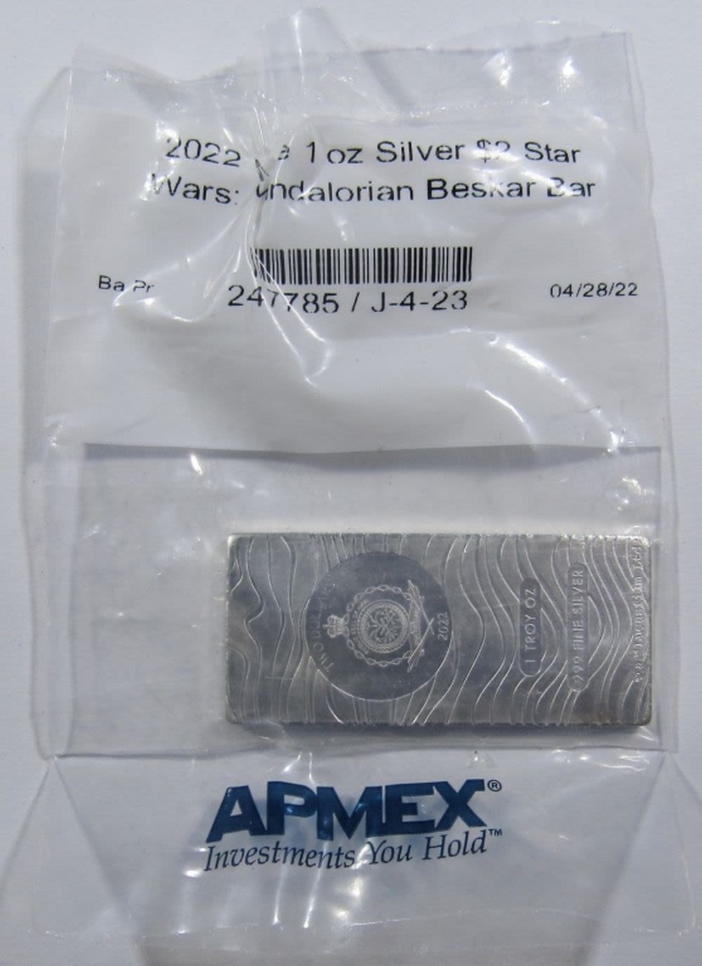 NIUE, STAR WARS: MANDALORIAN BESKAR BAR, IN OPENED APMEX BAG.