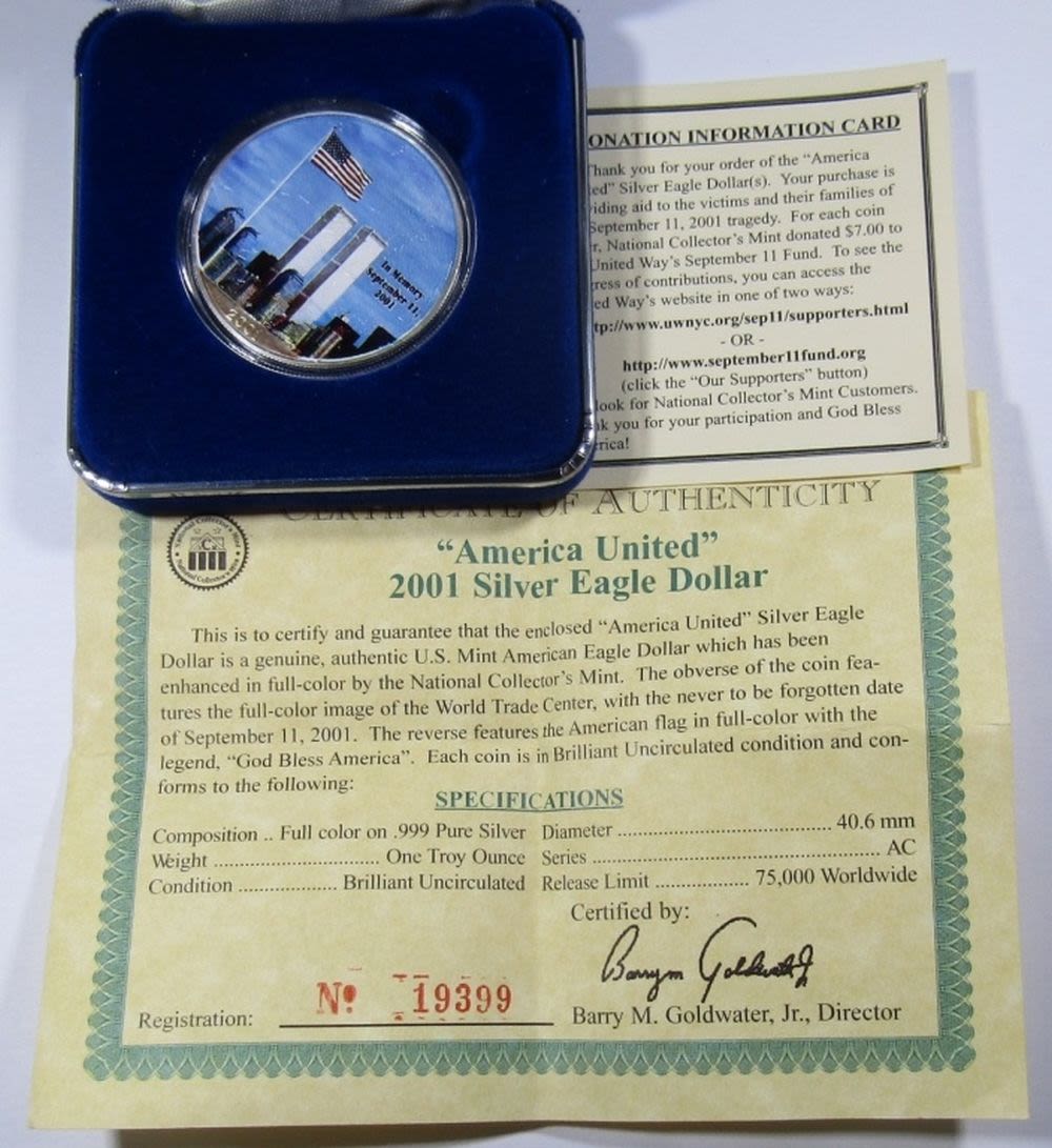 IN VELVET BOX WITH COA, “AMERICA UNITED” SEPTEMBER 11 EAGLE.