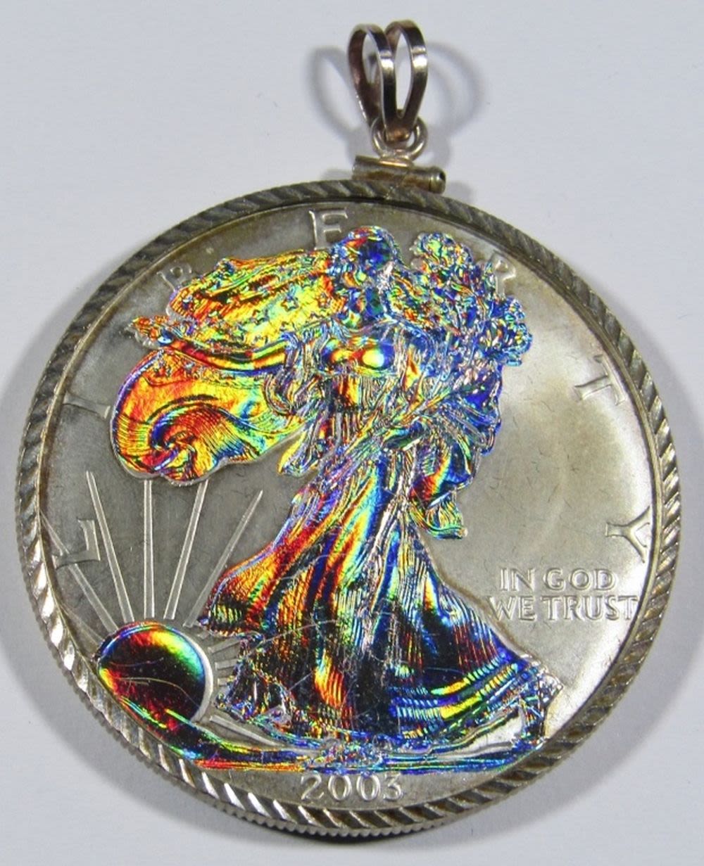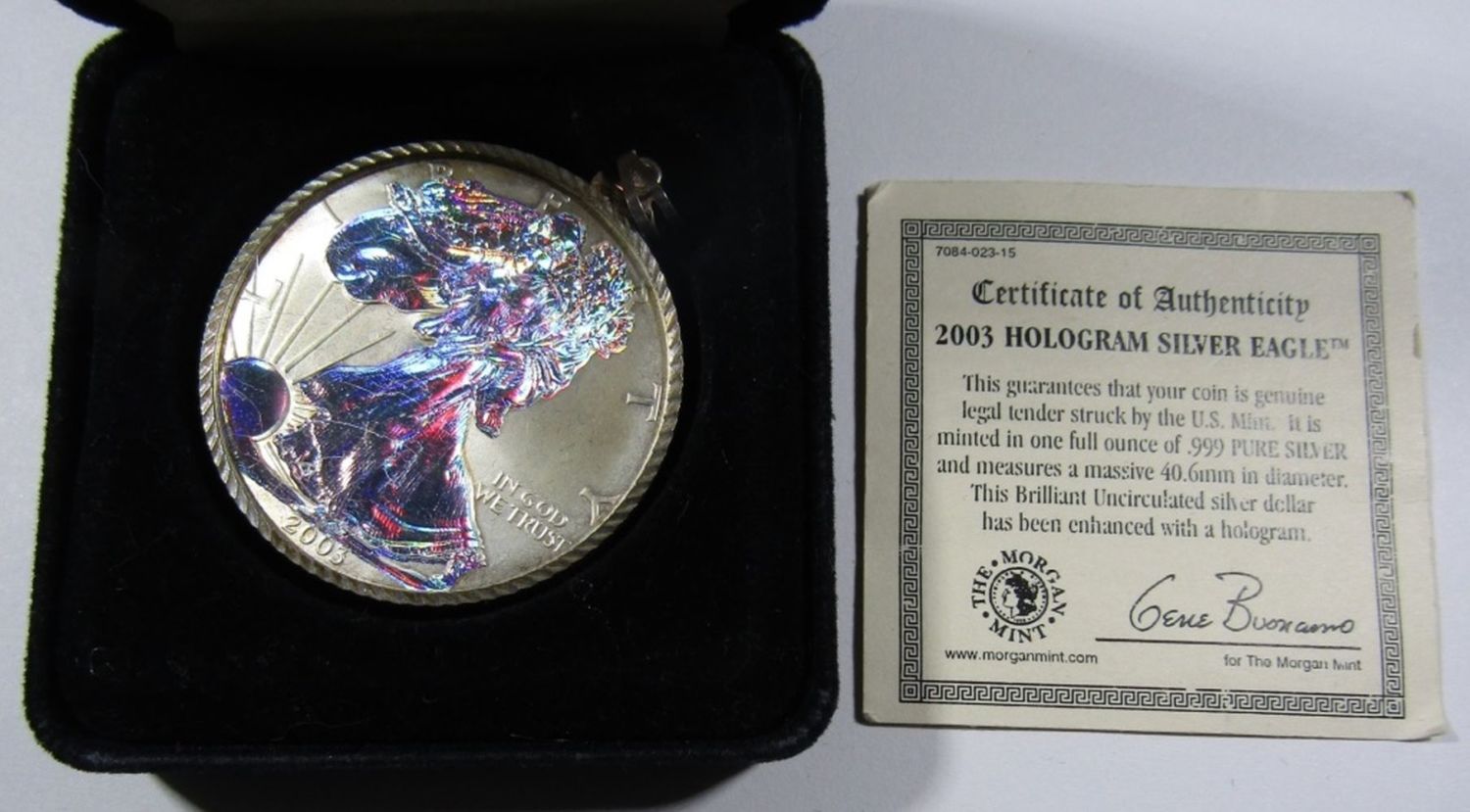 2003 BU AMERICAN SILVER EAGLE, ENHANCED WITH A HOLOGRAM, IN VELVET BOX WITH COA