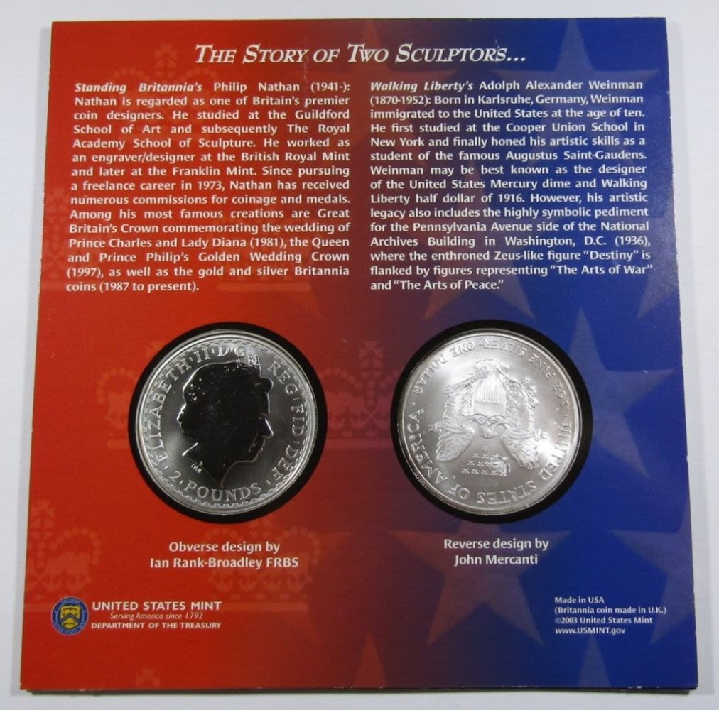 (2) SILVER COINS – AMERICAN SILVER EAGLE & BRITANNIA SILVER COIN in ORIGINAL PACKAGE