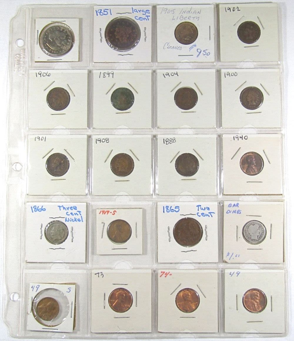 1866 THREE CENT NICKEL; 1912 BARBER DIME; 1865 TWO CENT PIECE; (4) WHEAT CENTS (2) LINCOLN CENTS (1) 1979 SBA