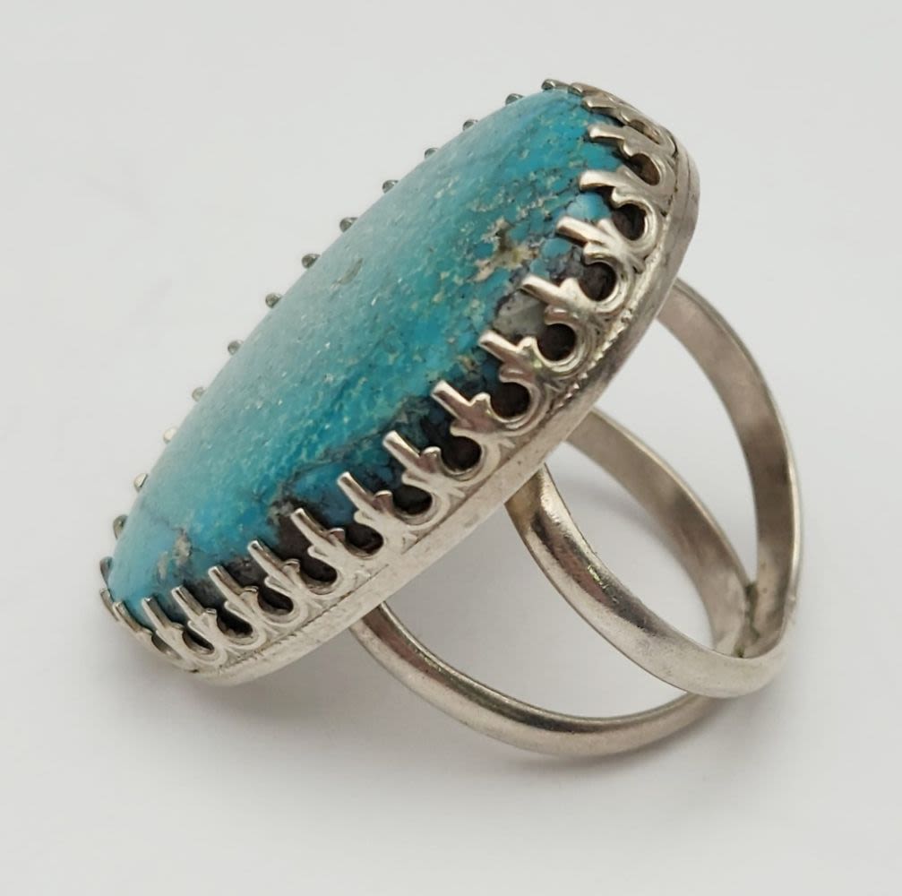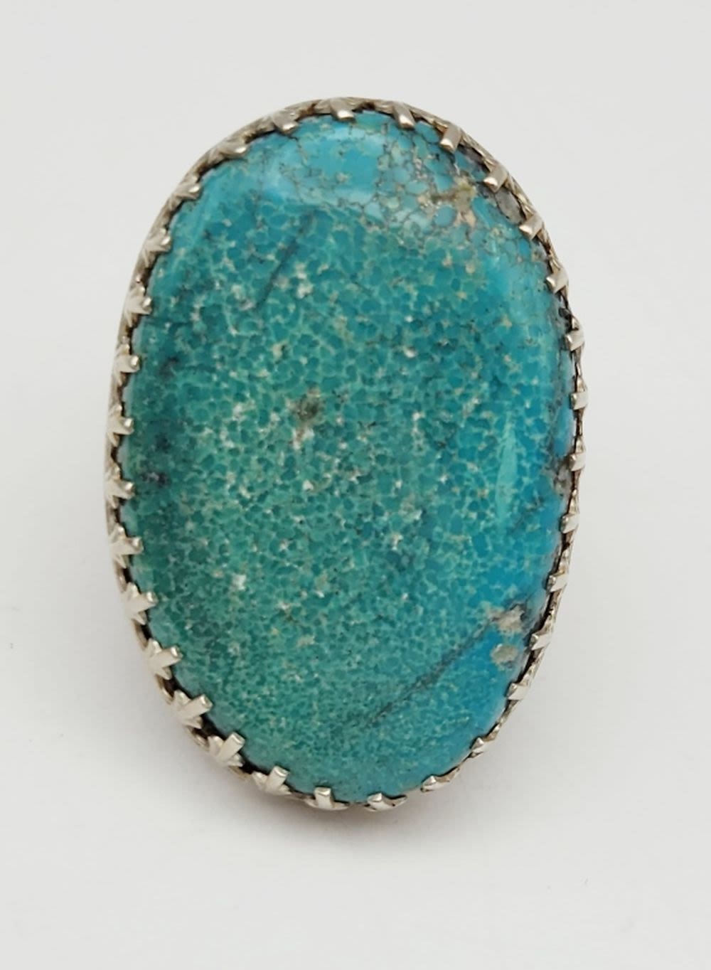 LARGE TURQUOISE CENTER STONE-RING SIZE 8-TOTAL 10 DWT