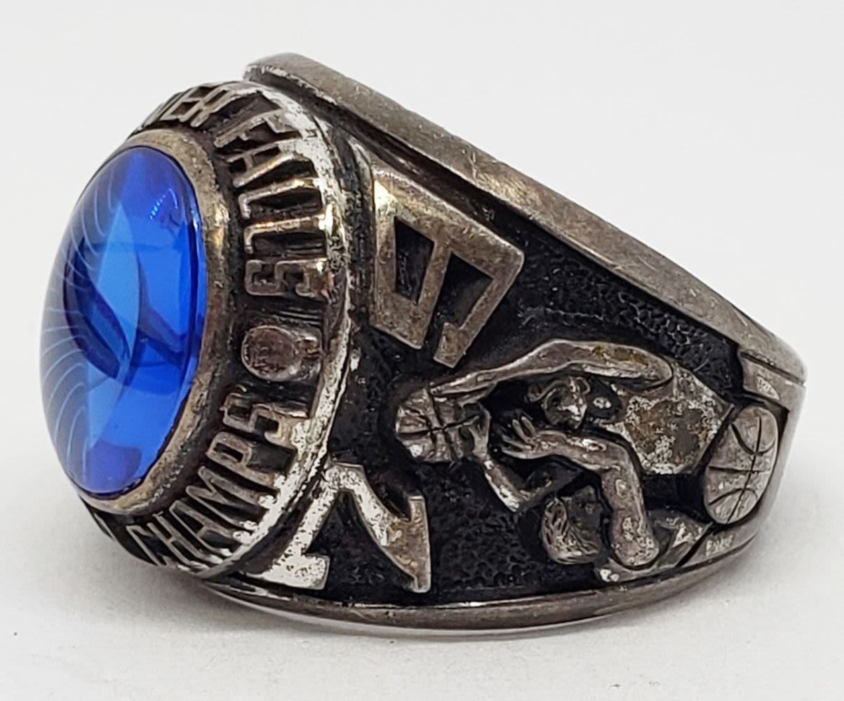 RING WITH NAVY CENTER STONE-RING SIZE 10-TOTAL 10 DWT