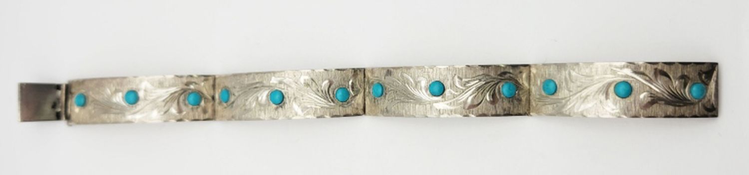 WITH SLEEPING BEAUTY STONES-ENGRAVED LEAF DESIGN-TOTAL 14 DWT