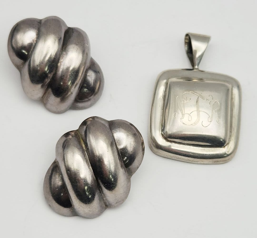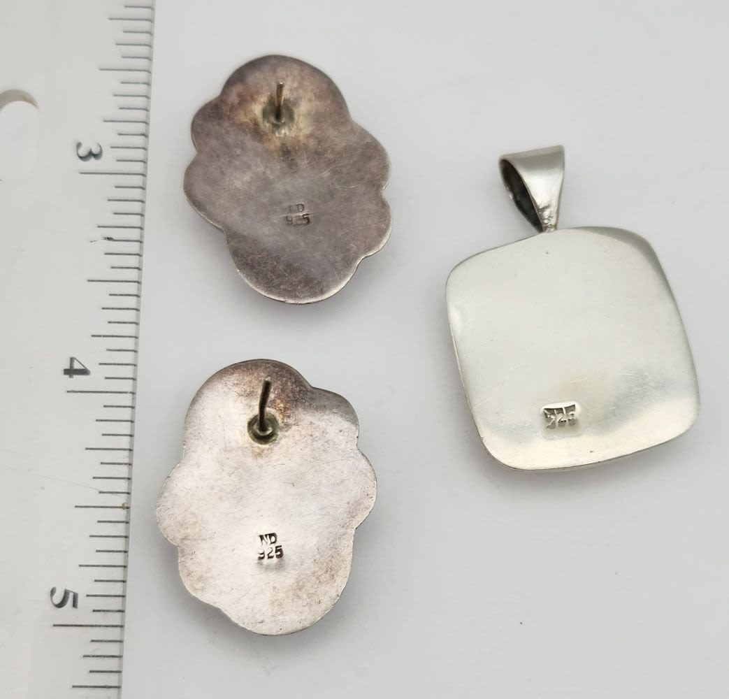 STERLING EARRINGS & (1)SQUARE PENDANT WITH “NFR” ENGRAVED DESIGN-TOTAL 13 DWT