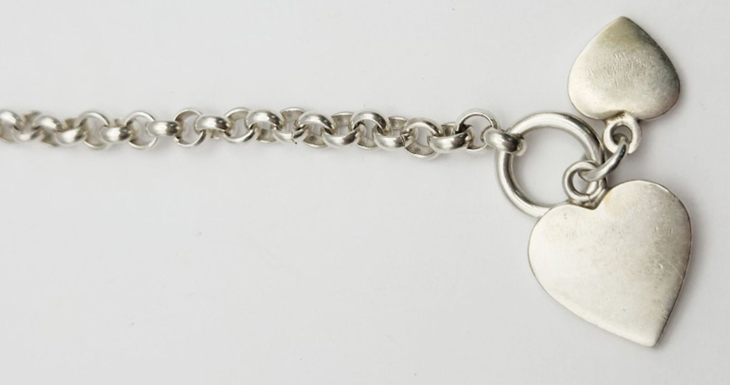(2)HEART CHARMS-MEASURES 7.5 INCHES-TOTAL 22 DWT
