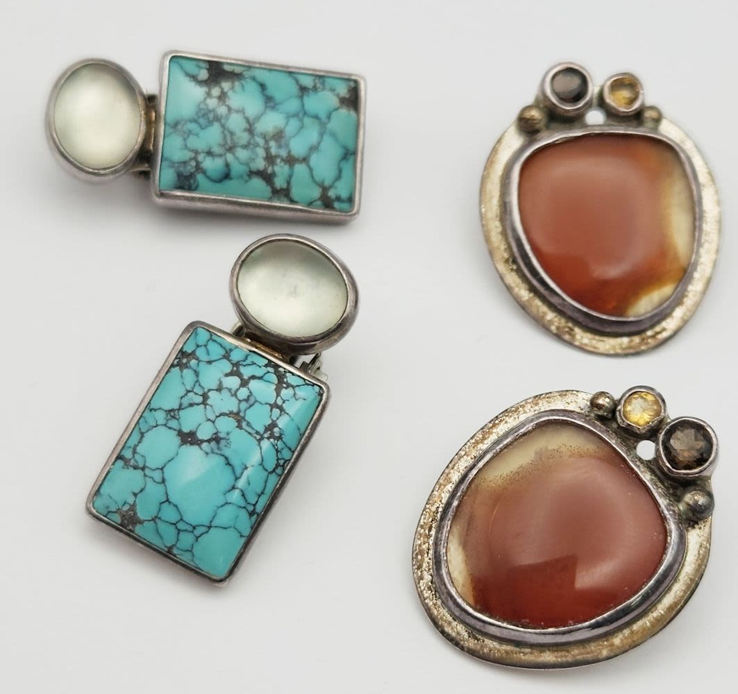 EARRINGS (1)WITH TURQUOISE-NICE CHUNKY PIECES! TOTAL 18 DWT