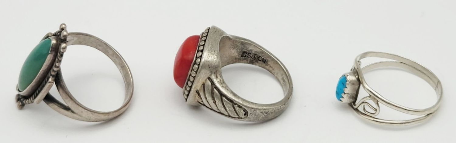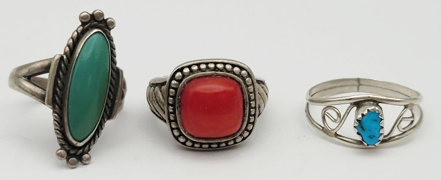 CORAL AND TURQUOISE CENTER STONES-VARIOUS SIZES 5-6-TOTAL 8 DWT