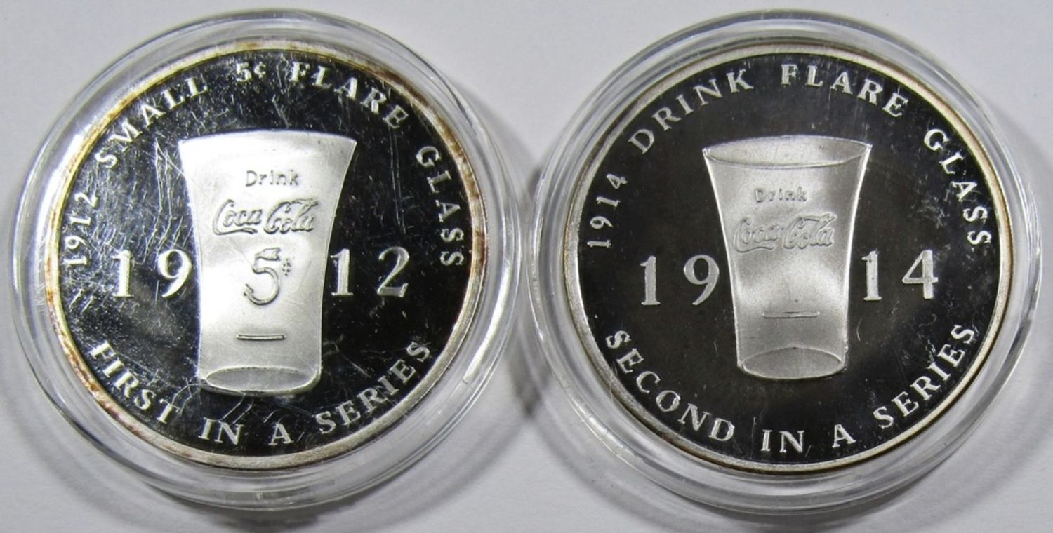 1912 & 1914 FLARE GLASS ART ROUNDS FIRST AND SECOND IN COLLECTOR SERIES.