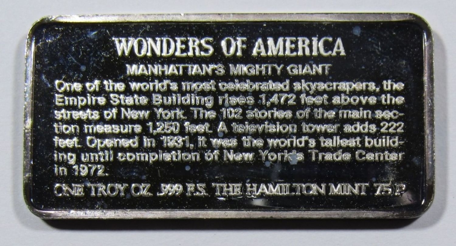 WONDERS OF AMERICA .999 SILVER BAR, THE HAMILTON MINT
