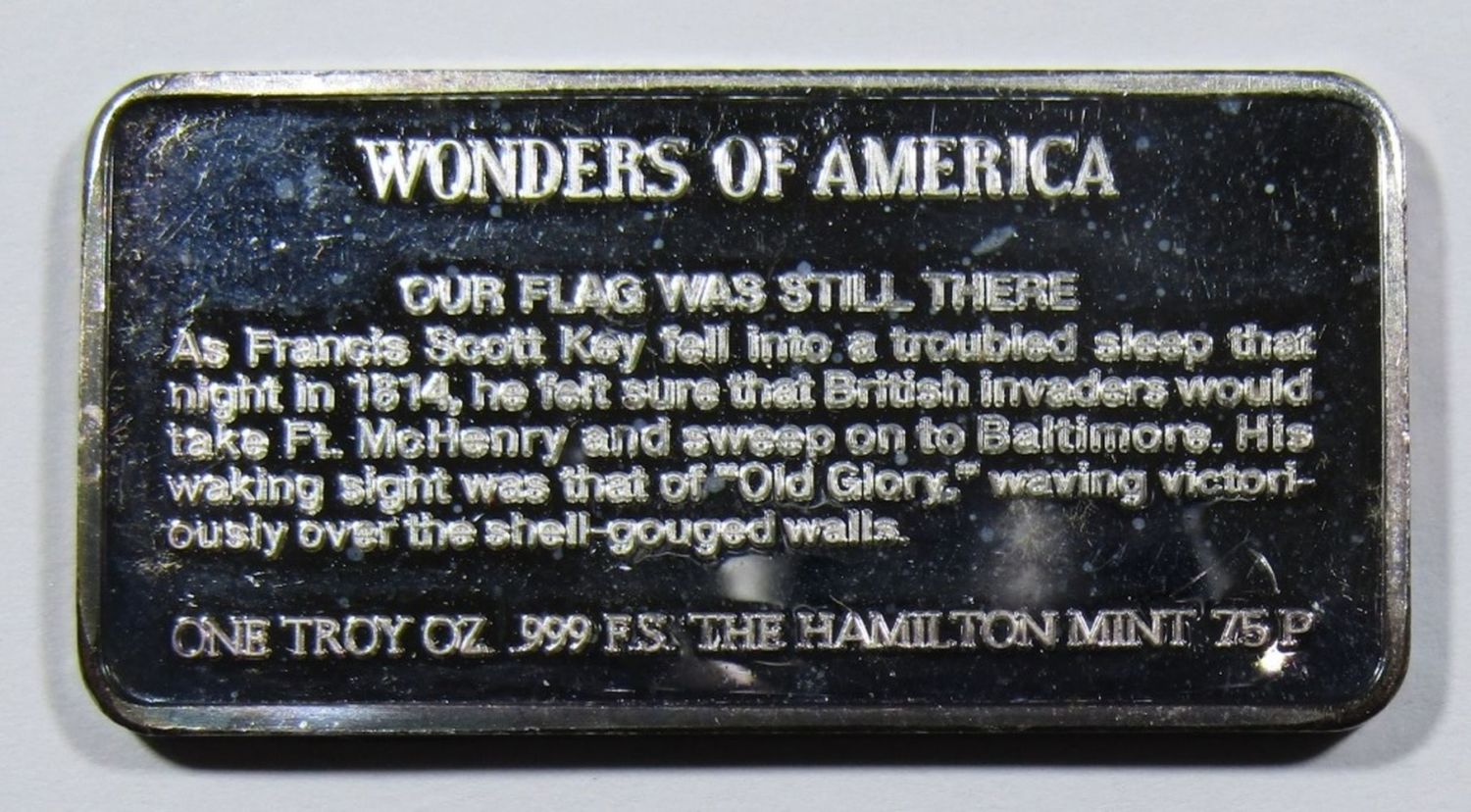 WONDERS OF AMERICA .999 SILVER BAR, THE HAMILTON MINT