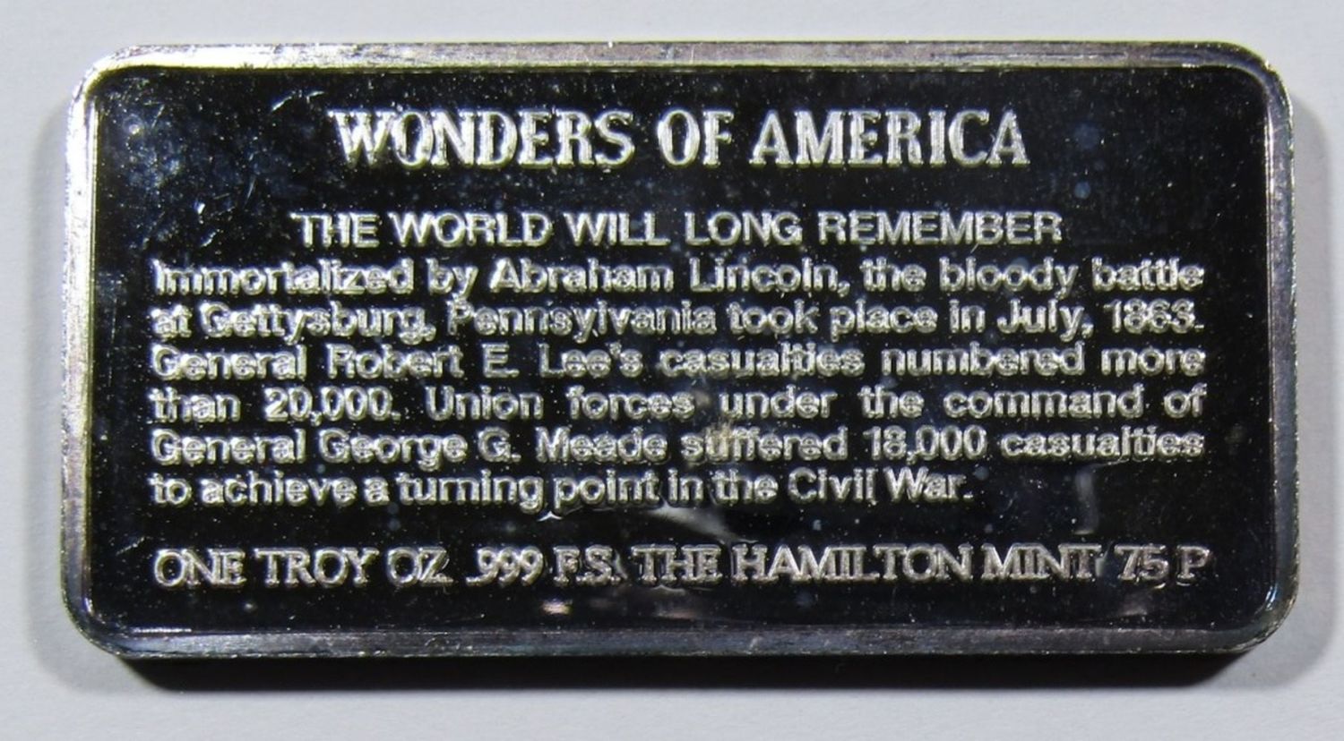 WONDERS OF AMERICA .999 SILVER BAR, THE HAMILTON MINT