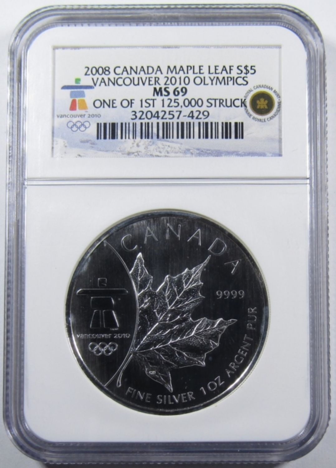1oz .999 SILVER VANCOUVER 2010 OLYMPICS, ONE OF FIRST 125,000 STRUCK