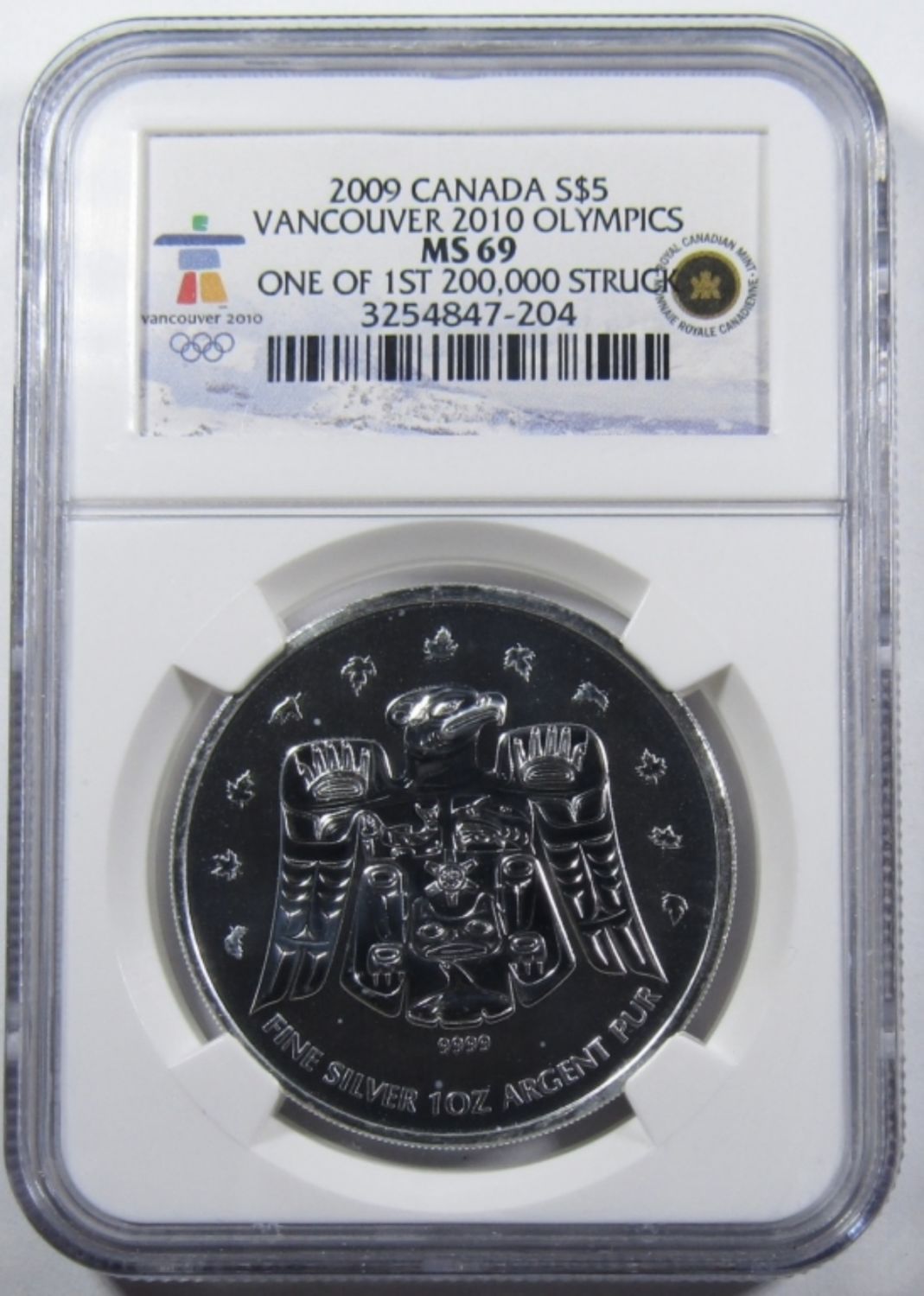 1oz .999 SILVER VANCOUVER 2010 OLYMPICS, ONE OF FIRST 200,000 STRUCK