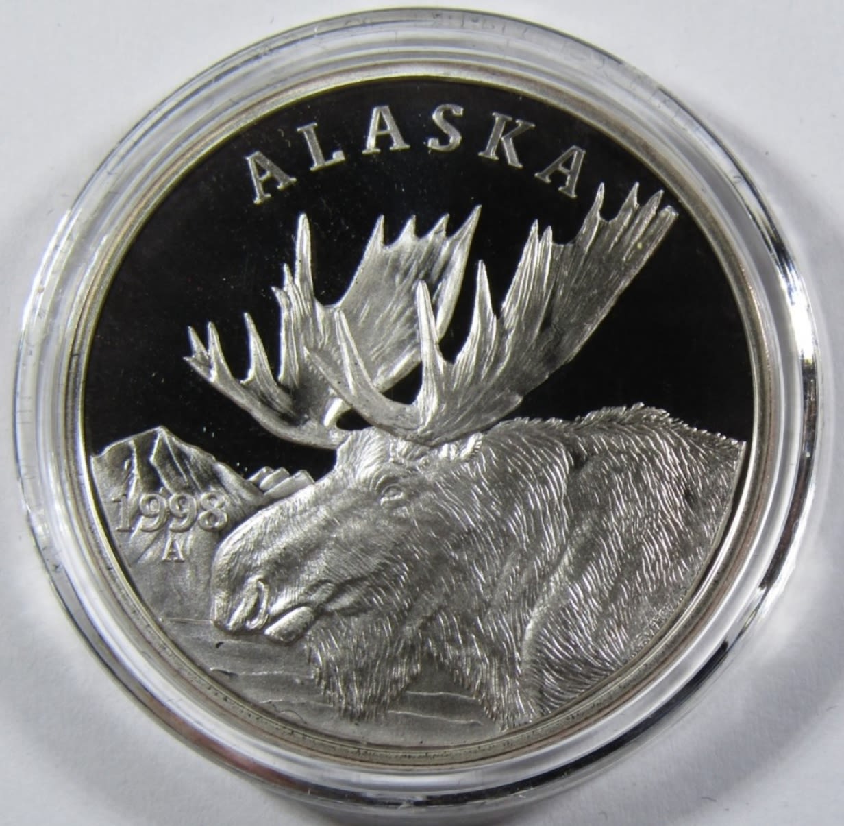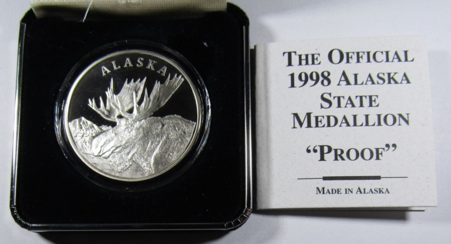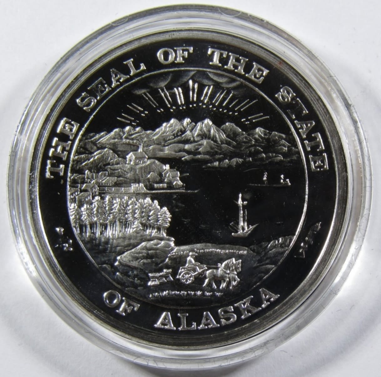 OFFICIAL ALASKA STATE MEDALLION, ALASKA MINT, IN VELVET CASE WITH COA.