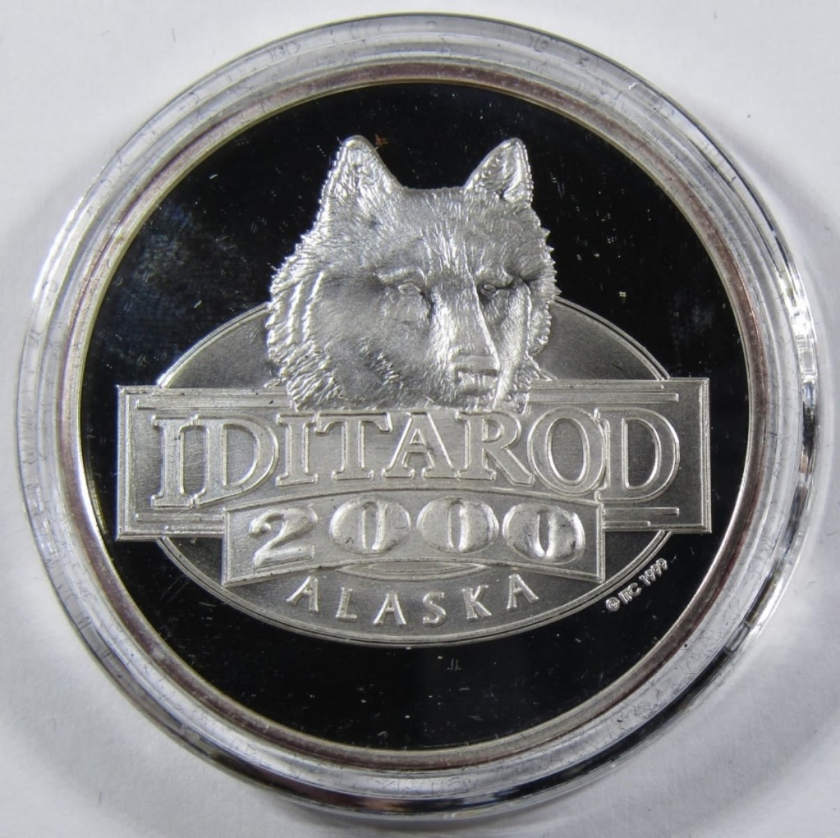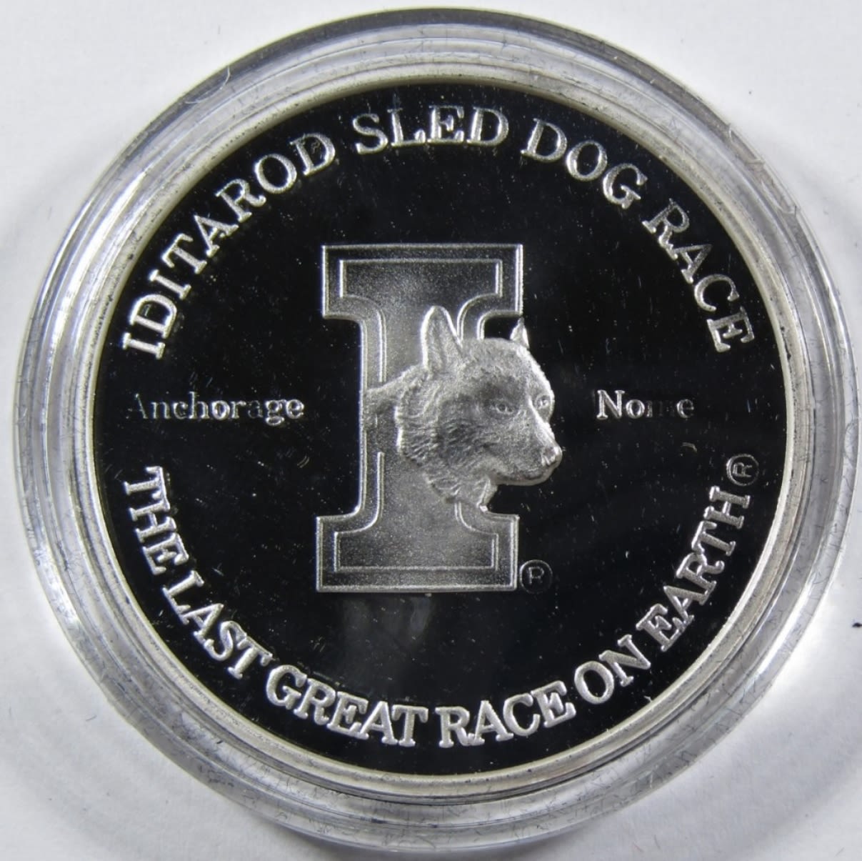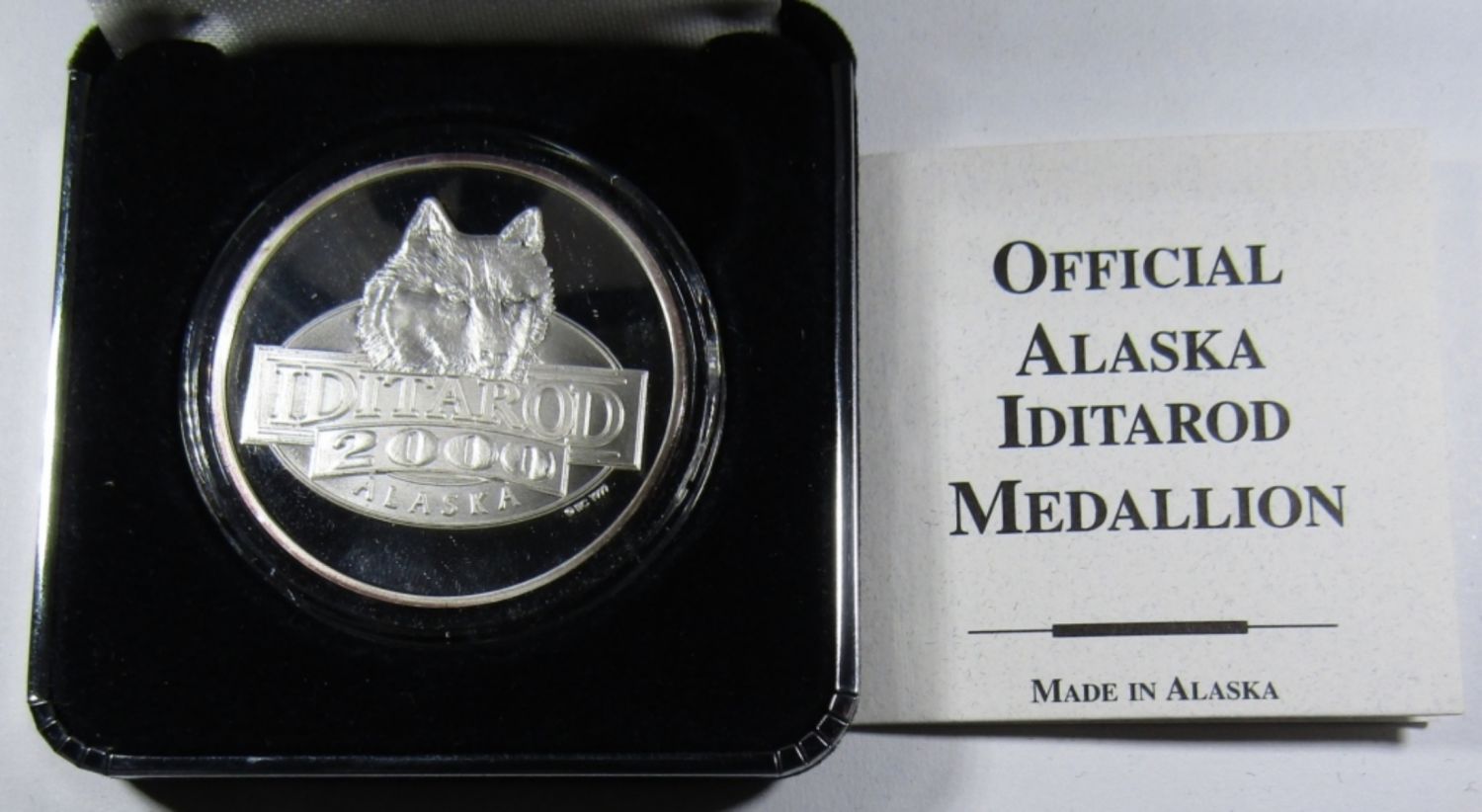 OFFICIAL ALASKA IDITAROD MEDALLION, ALASKA MINT, IN VELVET CASE WITH COA.