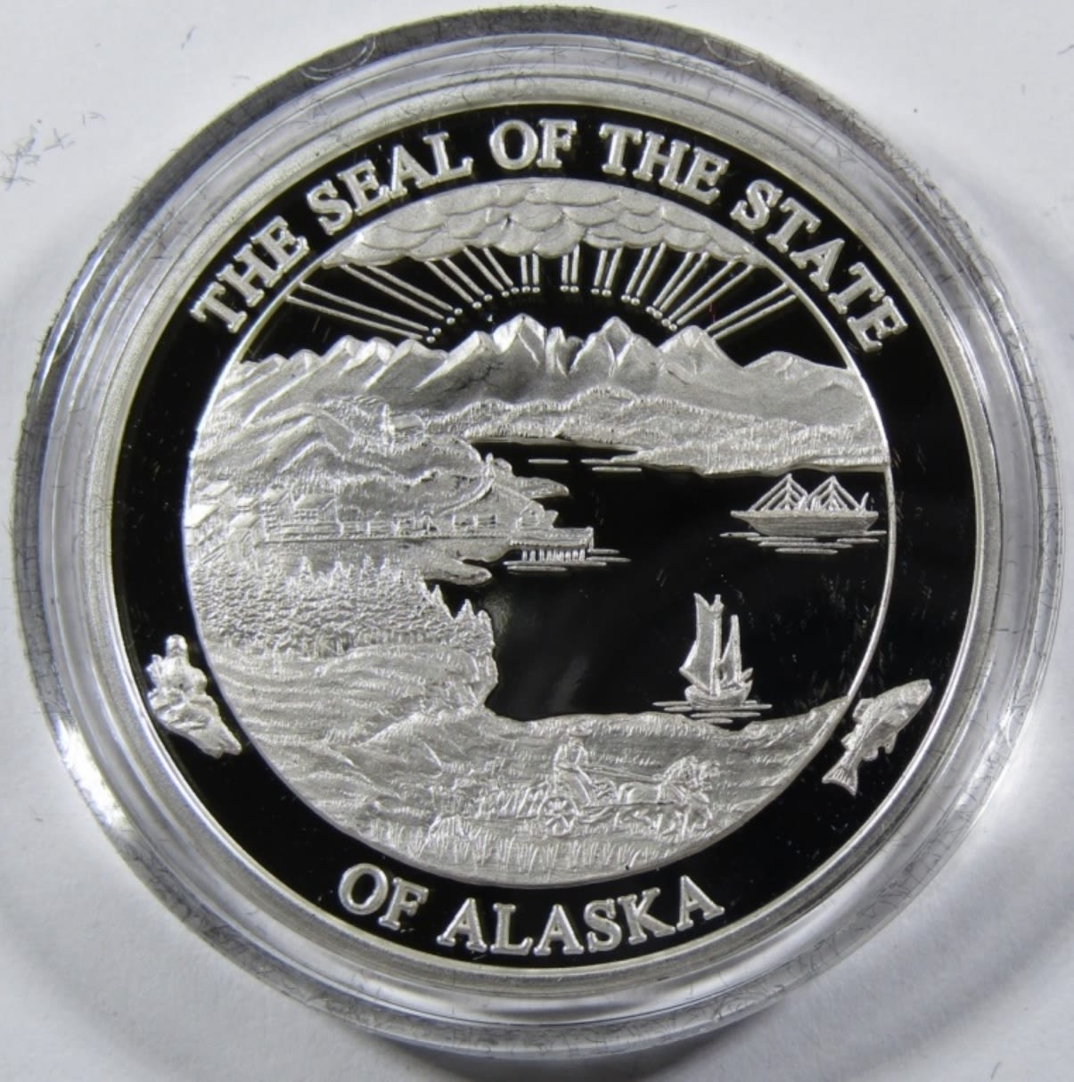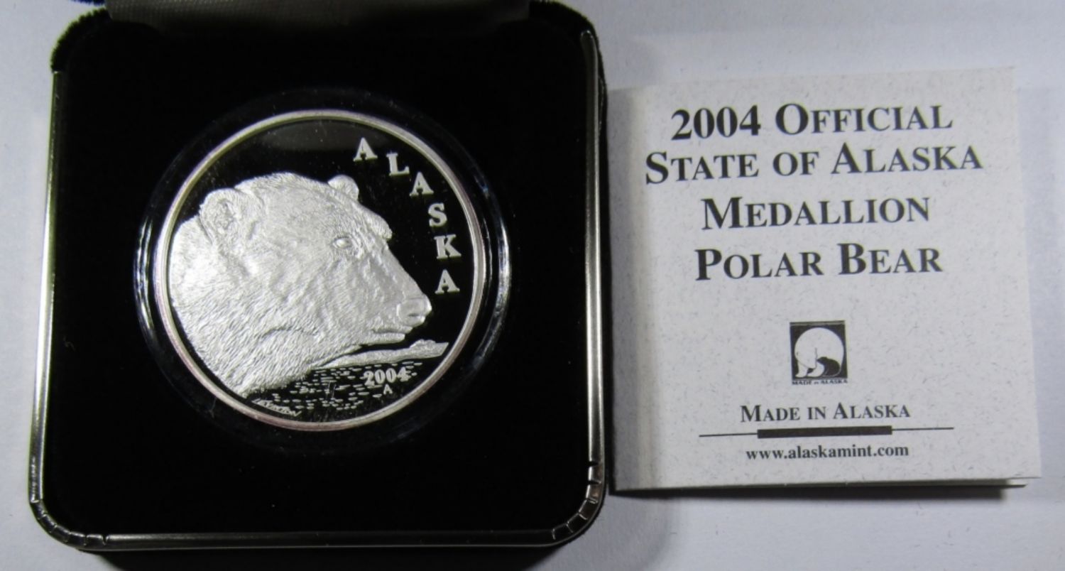 OFFICIAL STATE OF ALASKA MEDALLION, ALASKA MINT, IN VELVET CASE WITH COA.