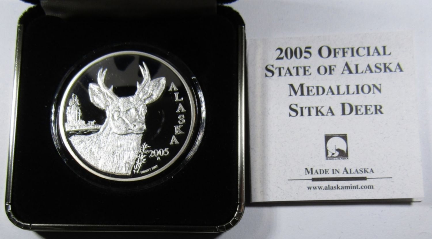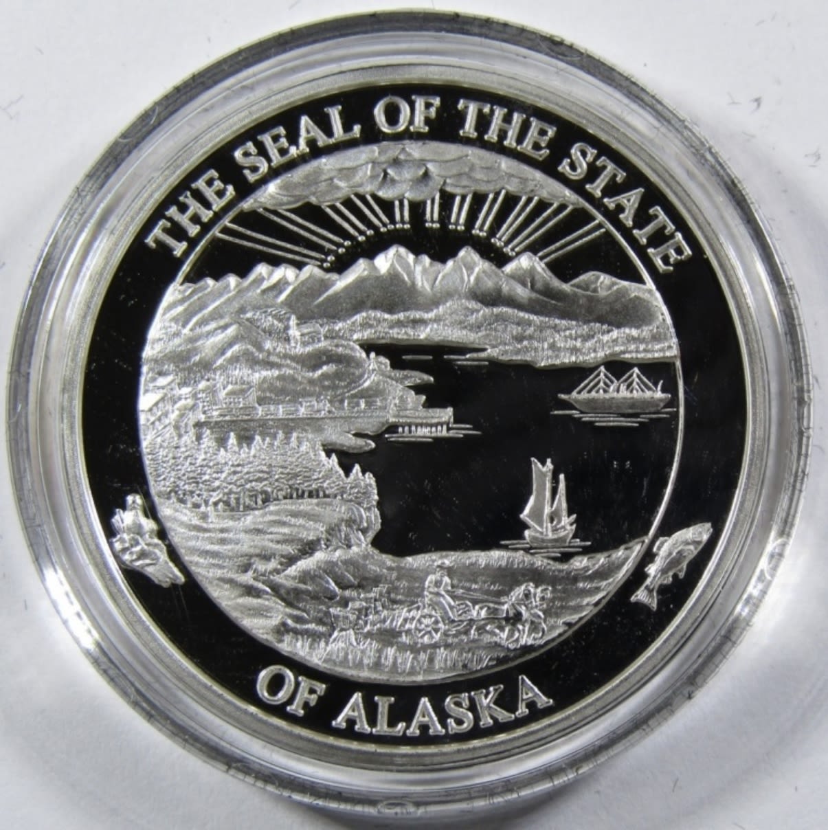 OFFICIAL STATE OF ALASKA MEDALLION, ALASKA MINT, IN VELVET CASE WITH COA.