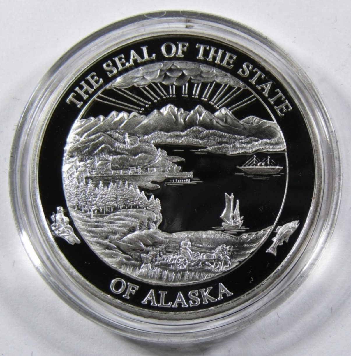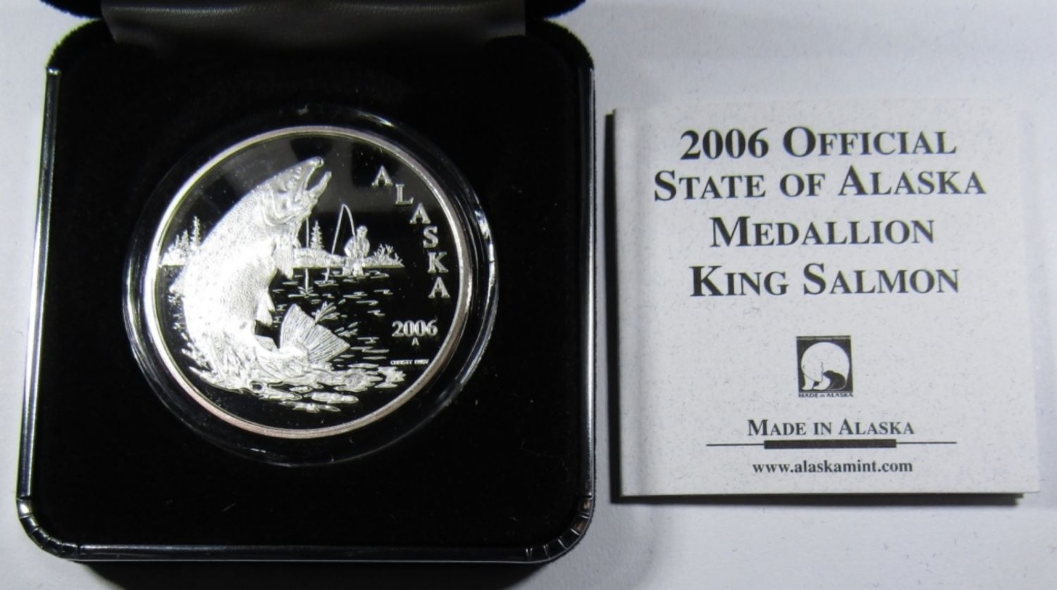 OFFICIAL STATE OF ALASKA MEDALLION, ALASKA MINT, IN VELVET CASE WITH COA.
