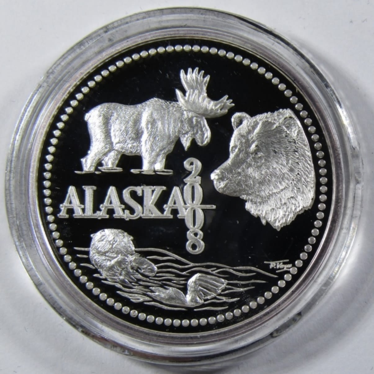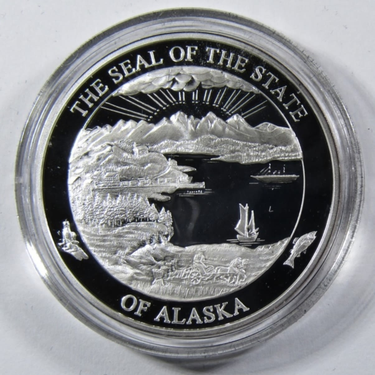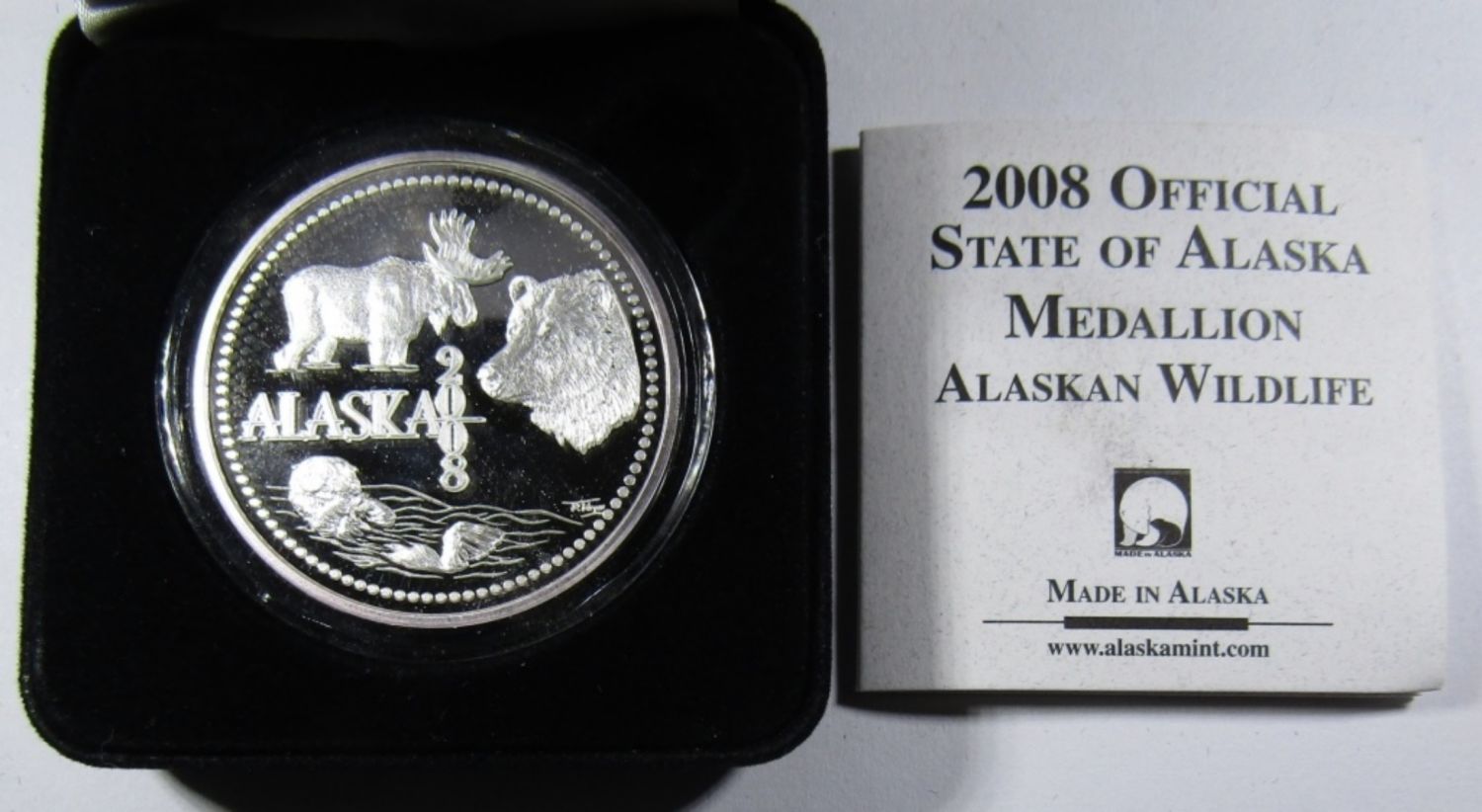 OFFICIAL STATE OF ALASKA MEDALLION, ALASKA MINT, IN VELVET CASE WITH COA.