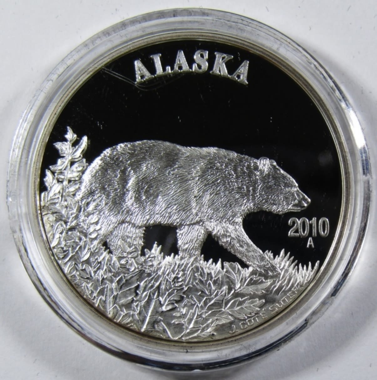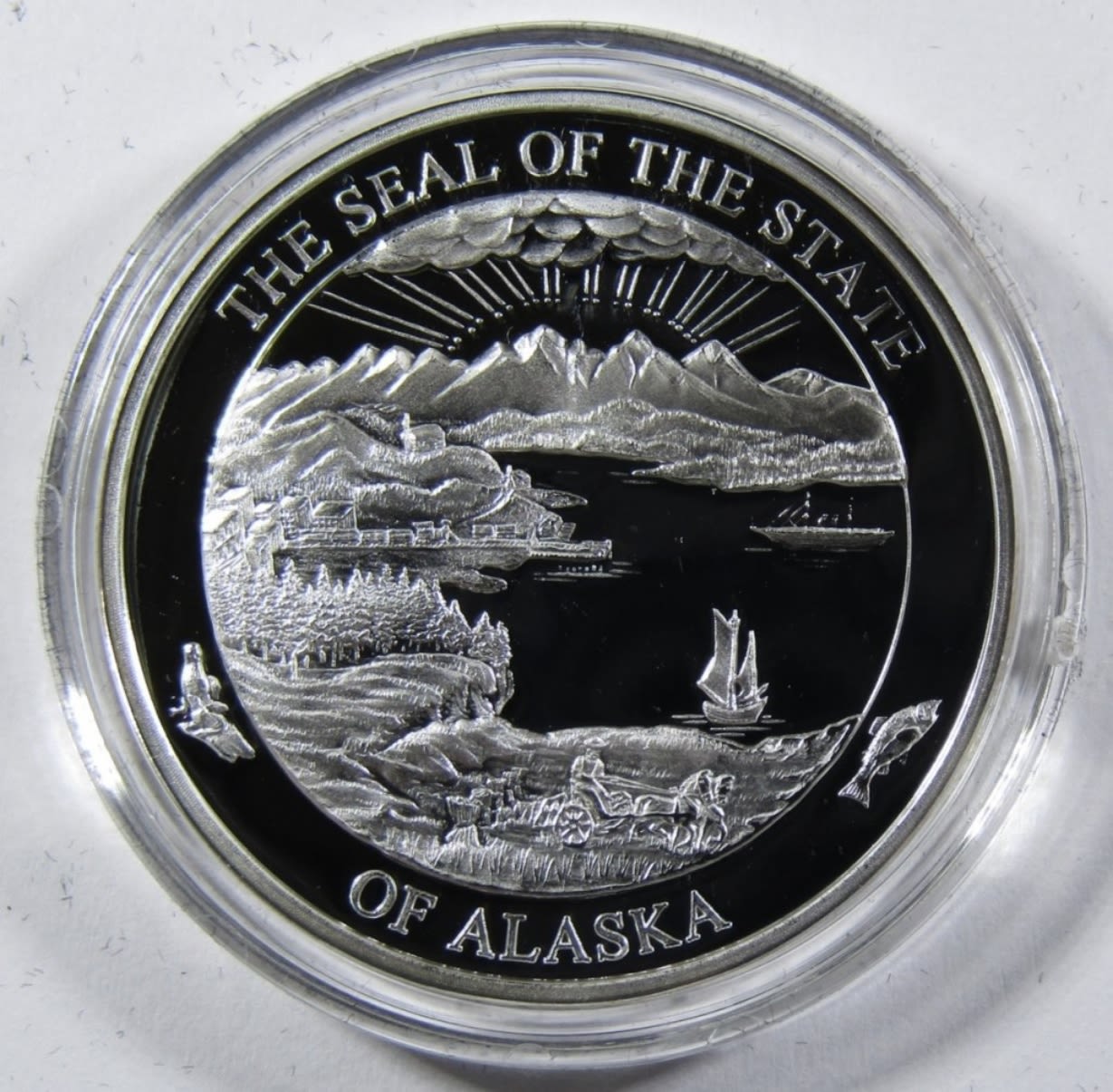 OFFICIAL STATE OF ALASKA MEDALLION, ALASKA MINT, IN VELVET CASE WITH COA.