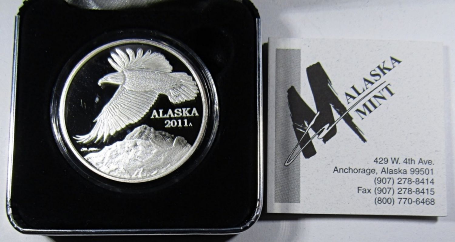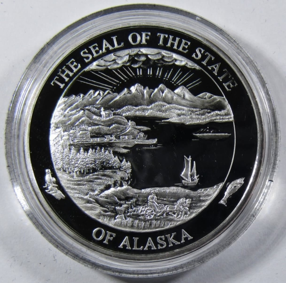OFFICIAL STATE OF ALASKA MEDALLION, ALASKA MINT, IN VELVET CASE WITH COA.