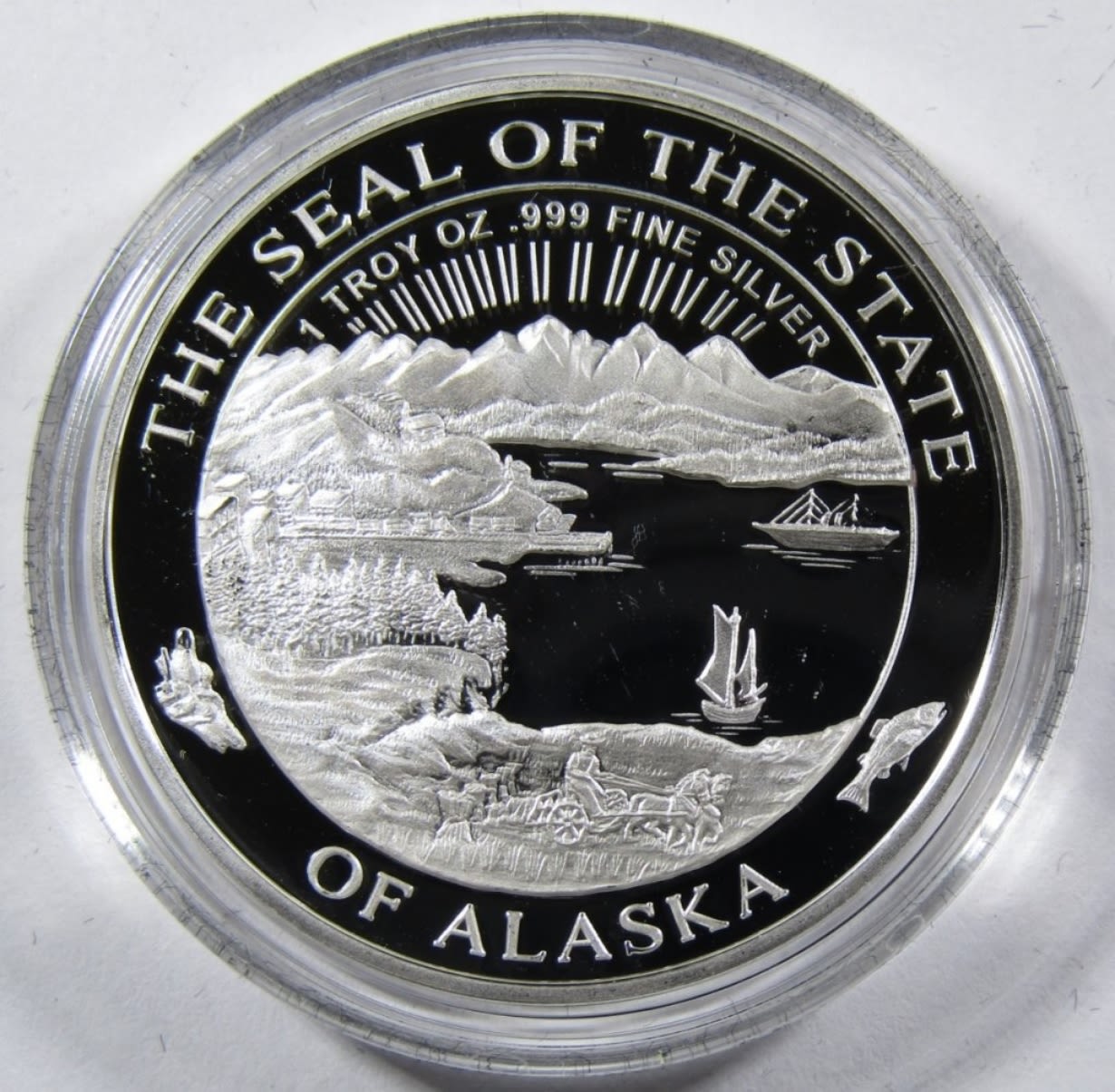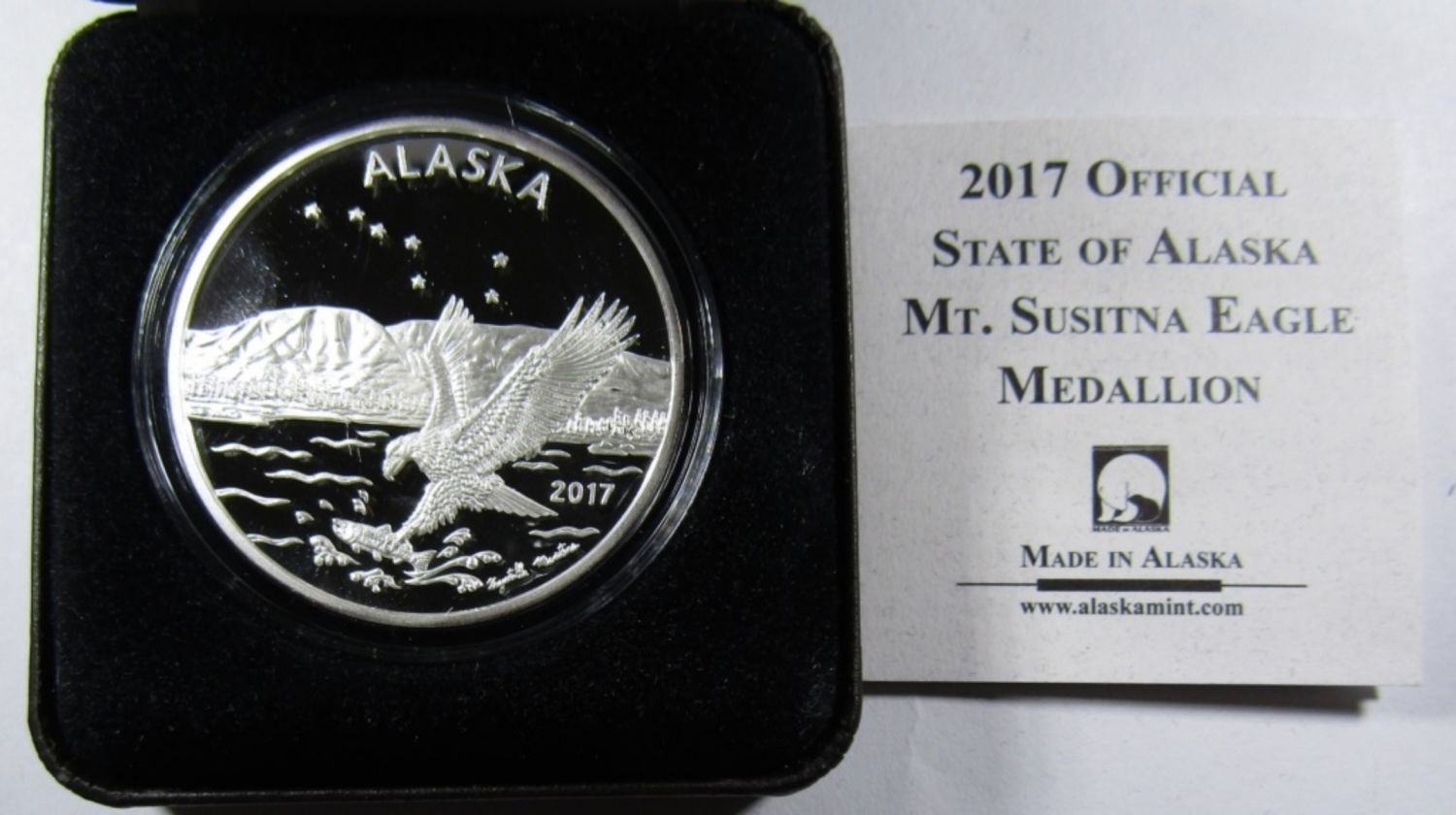 OFFICIAL STATE OF ALASKA MEDALLION, ALASKA MINT, IN VELVET CASE WITH COA.