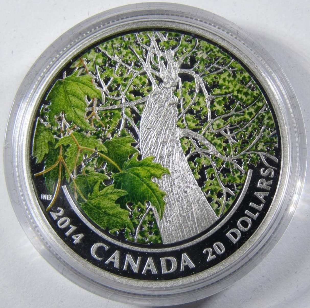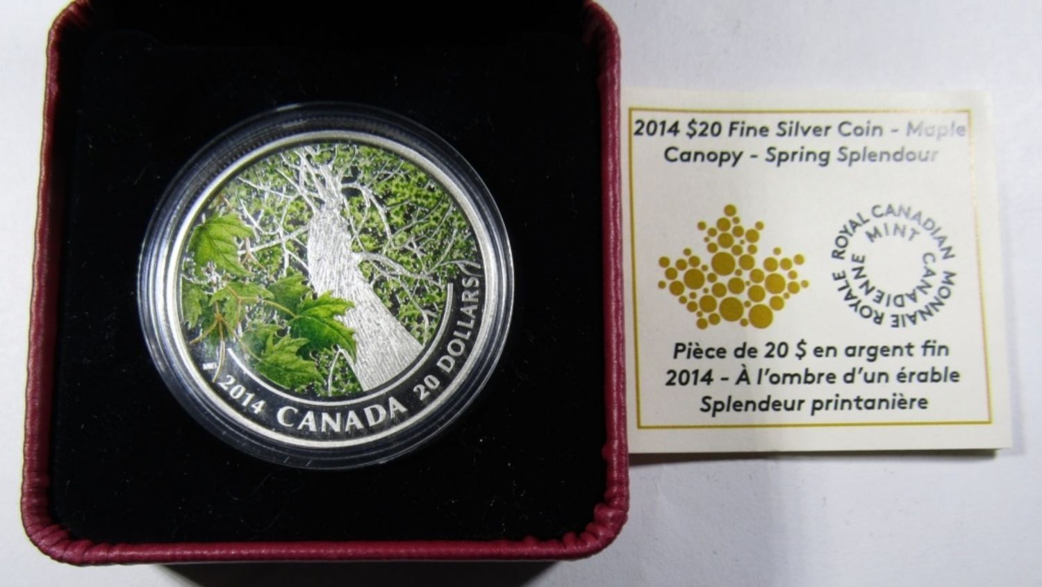 SILVER PROOF COIN, MAPLE CANOPY SPRING SPLENDOUR, WITH CASE AND COA.